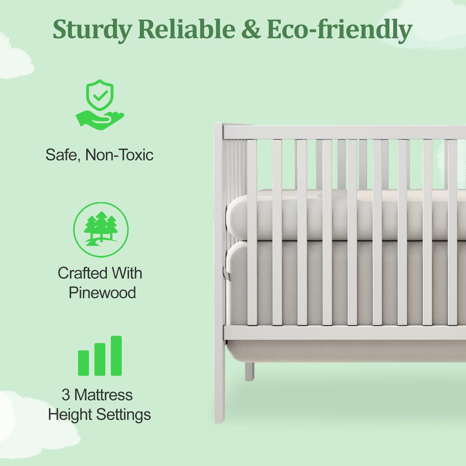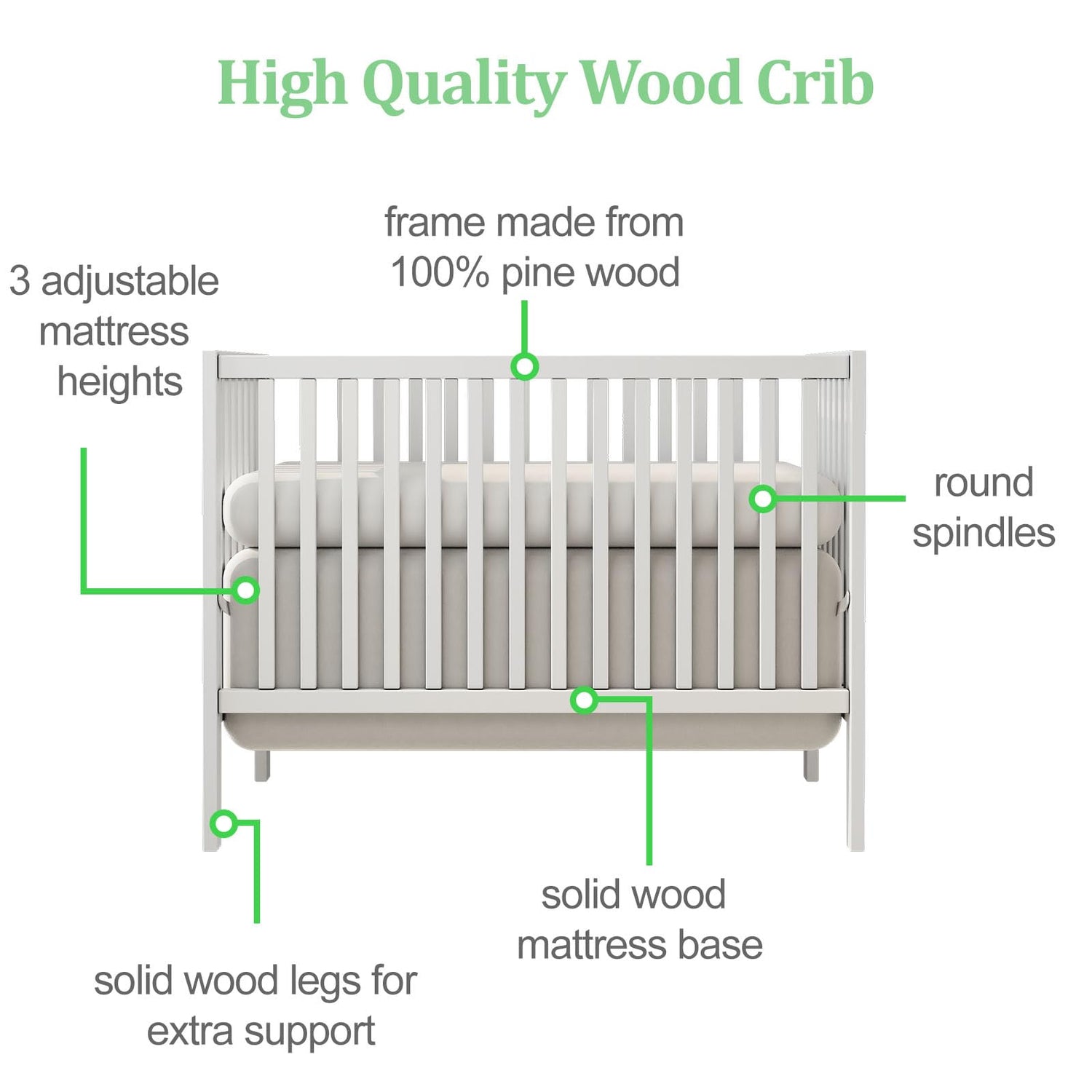 • 5-in-1 Convertible Wonder: Transform this crib into a toddler bed, daybed, and full-size bed as your child grows (Full-size Bed Frame and Mattress and toddler rail not included ). This versatile piece adapts effortlessly to your baby's development stages.
