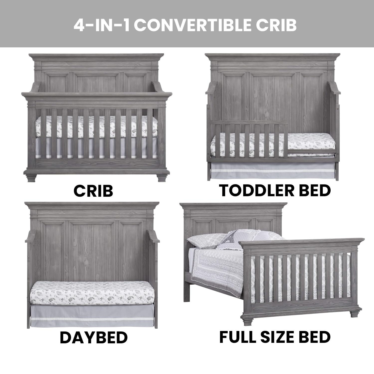 • THOUGHTFUL DESIGN: Designed to fit a standard-size crib mattress, this 4-in-1 Crib offers a convenient design that will grow as your baby grows by converting from a crib to toddler bed, daybed and full-size bed with 3-levels of mattress height adjustments