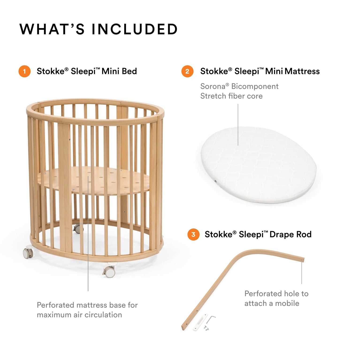- STOKKE SLEEPI MINI BUNDLE - The Stokke Sleepi Mini Bundle includes an adjustable bed, a mattress, and a drape rod to help create a nest-like environment for your child. Suitable for ages 0-5 years.