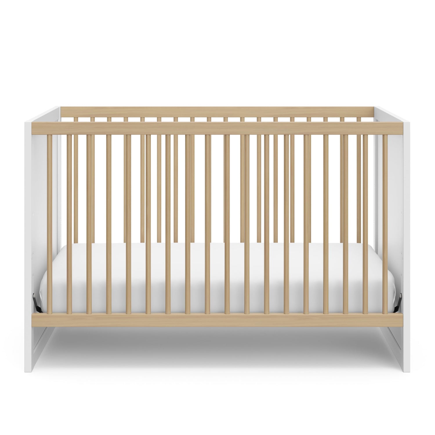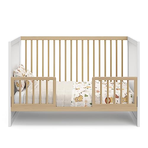Storkcraft Calabasas 3-in-1 Convertible Crib (White with Driftwood) – GREENGUARD Gold Certified, Fits Standard Crib Mattress, Converts to Toddler Bed, Modern Style, Easy 30-Minute Assembly