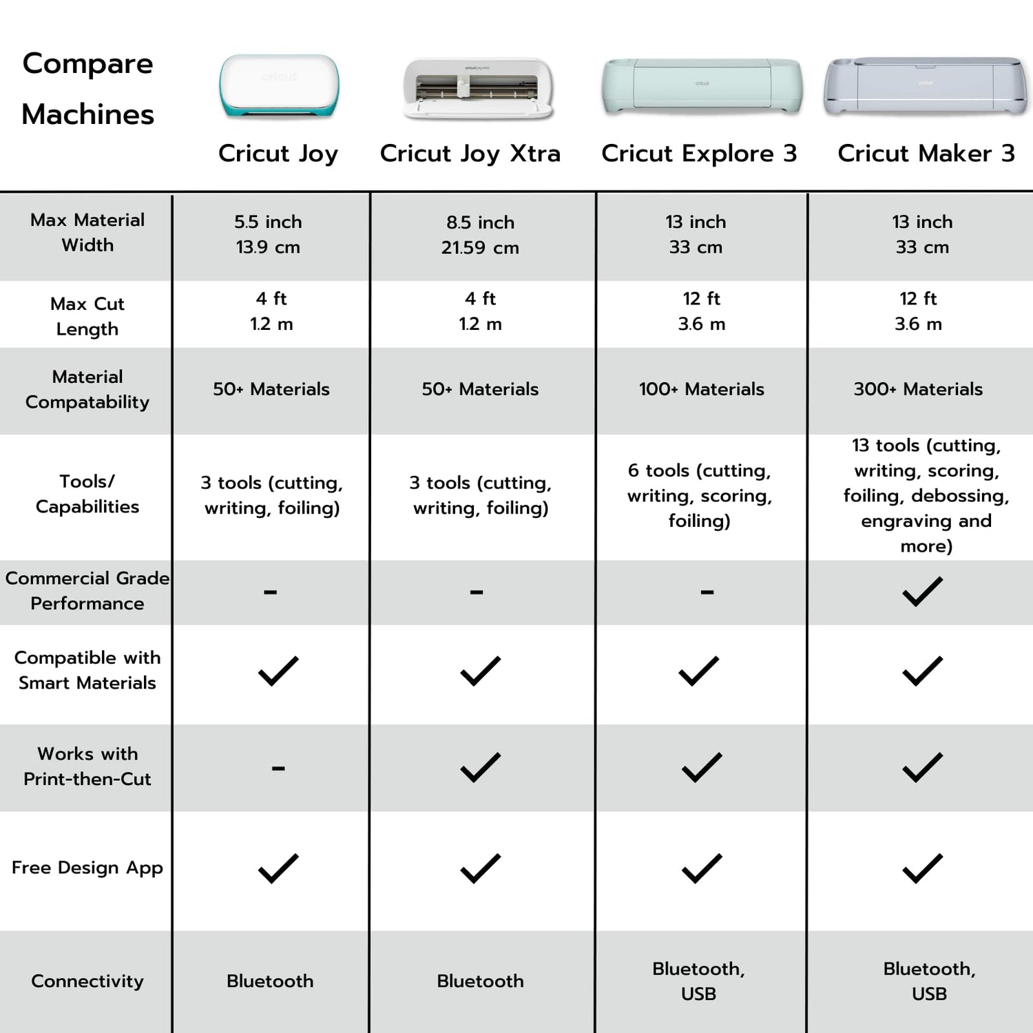 • CRICUT JOY: This Bluetooth capable, writing and cutting smart machine, makes DIY projects easy. Cricut Joy Smart Machine is ridiculously easy to set up and use, so you'll find endless excuses to personalize, organize, and customize every single day. This machine is small but mighty at only 8.43 inches wide, allowing for easy travel and storage!