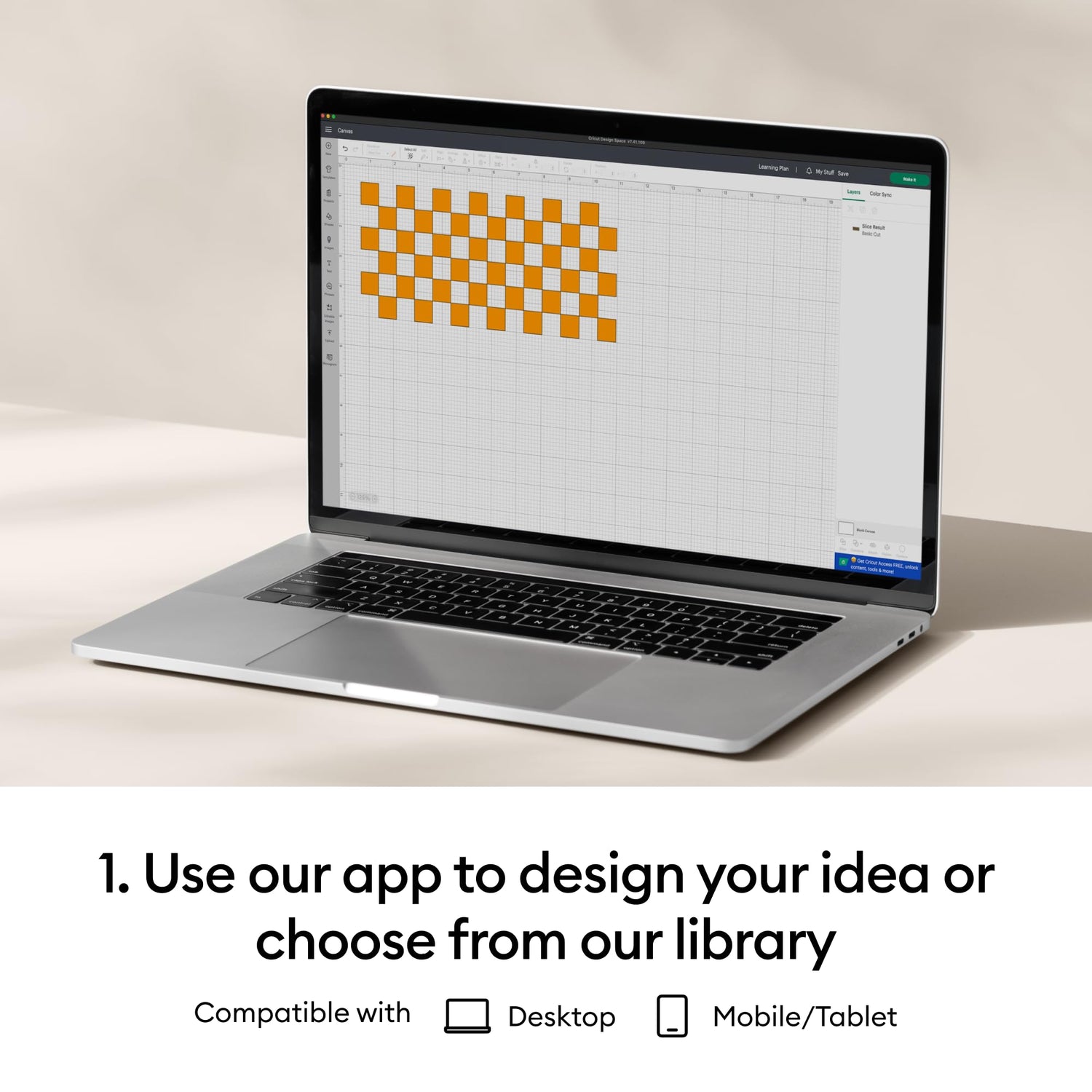 - DESIGN APP WITH ENDLESS POSSIBILITIES – Use with Cricut Design Space, our free app to kickstart and customize your projects. Design Space assists you through selecting your materials and utilizing the right tools. (iOS, Android, Windows, and Mac)