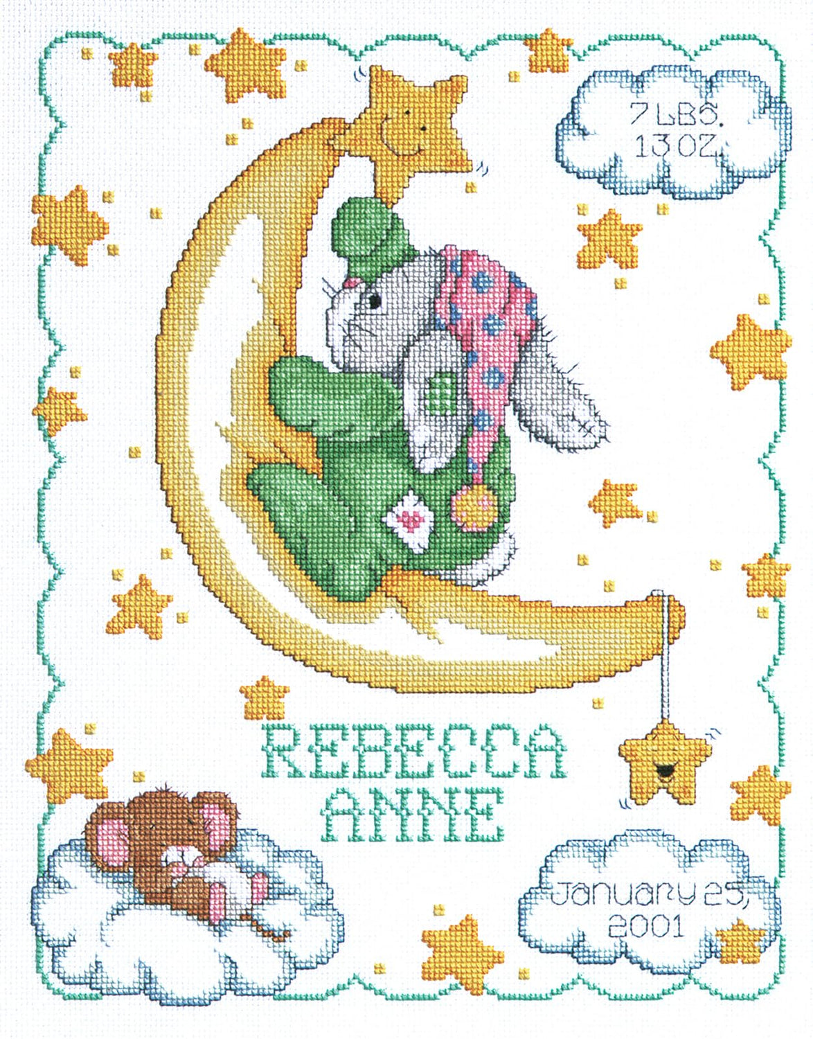 Janlynn Cross Stitch Kit, 14-Inch by 11-Inch, Crescent Moon Birth Announcement, White
