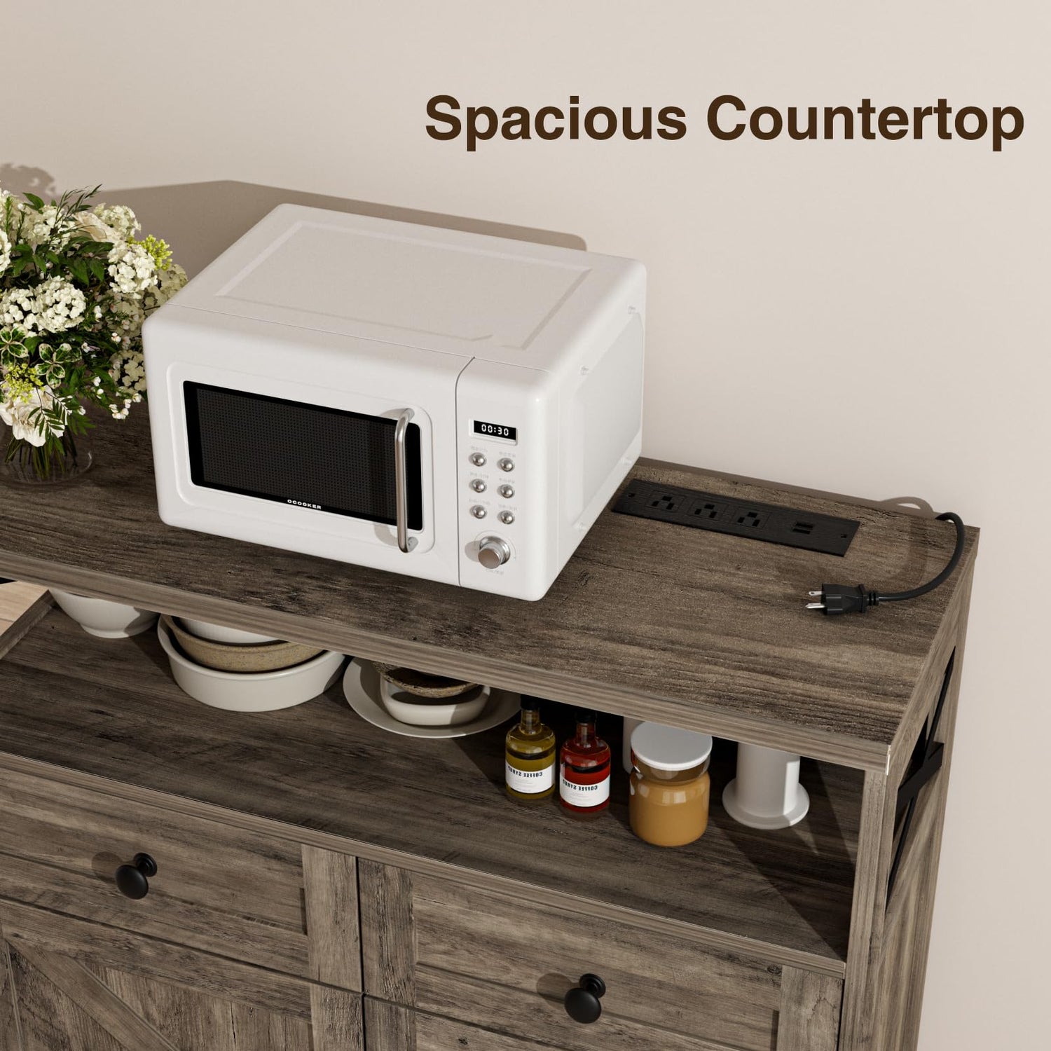 • Stylish Farmhouse Cabinet: Features with antique wooden finish, barn doors and metal crossbar decoration, this farmhouse buffet storage cabinet will add a touch of vintage elegance to your home decor. It will make your home a charming place to stay