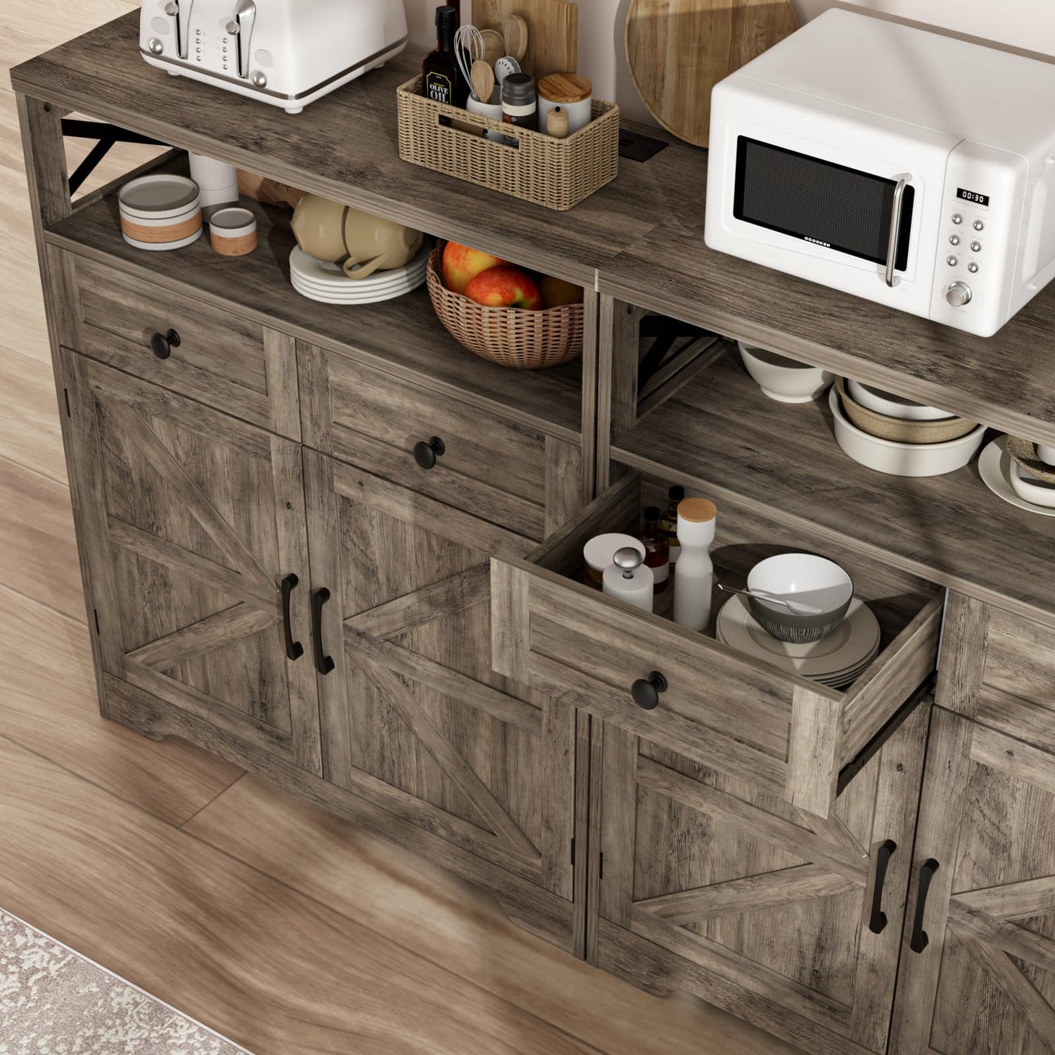 31.5" Rustic Grey Farmhouse Storage Cabinet with Barn Doors and Drawers, Sideboard Buffet Cabinet with Storage, Kitchen Pantry Hutch Cabinet, Coffee Bar Station Table for Kitchen, Livingroom, Bathroom