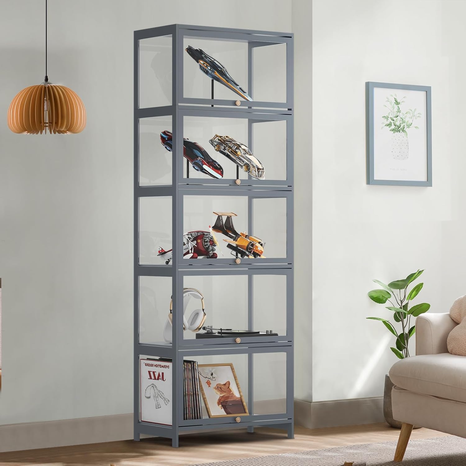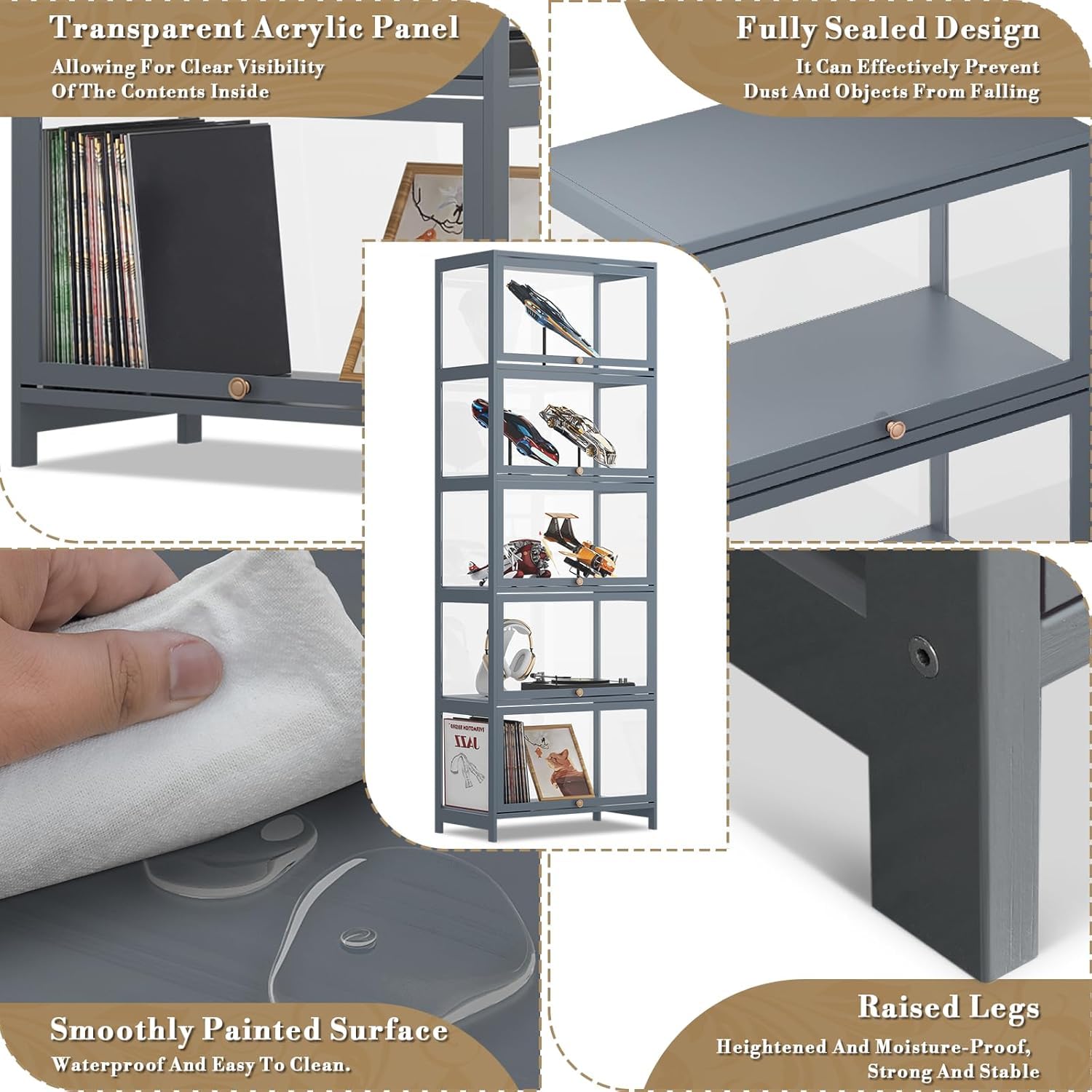 • 【5-Tier Large Capacity Design】The 5-tier display shelves provides generous storage with multiple levels, Its internal heightened design can easily store various display items. Its design allows it to fit seamlessly into different spaces while occupying minimal room.