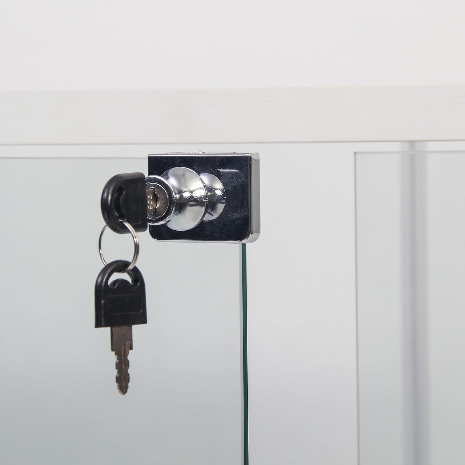 Details: Glass Display Cabinet with 5 Shelves Double Door, Curio Cabinets for Living Room, Bedroom, Office, White Floor Standing Glass Bookshelf, Quick Installation,73.82”(H) x 31.69”(L) x 14.37”(W)