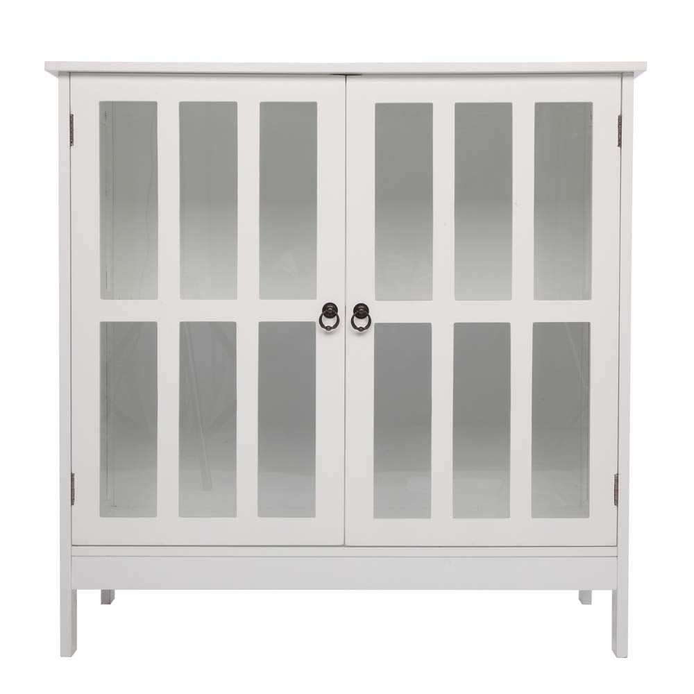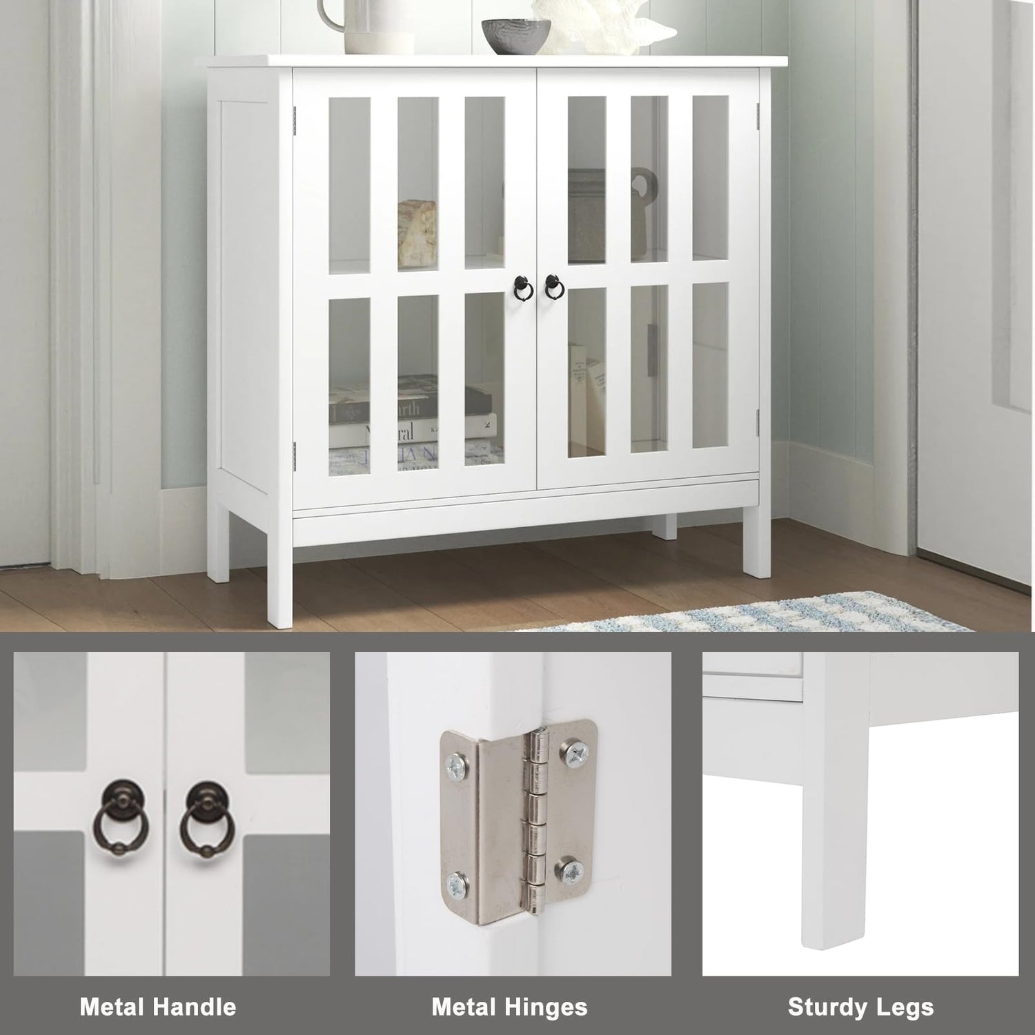 Double Door Side Cabinet,Sideboard Buffet Storage Cabinet, Kitchen Storage Cabinet with 2 Glass Doors, Liquor Cabinet for Home Kitchen Dining Room, Cupboard Console Table, Curio Cabinet (White)