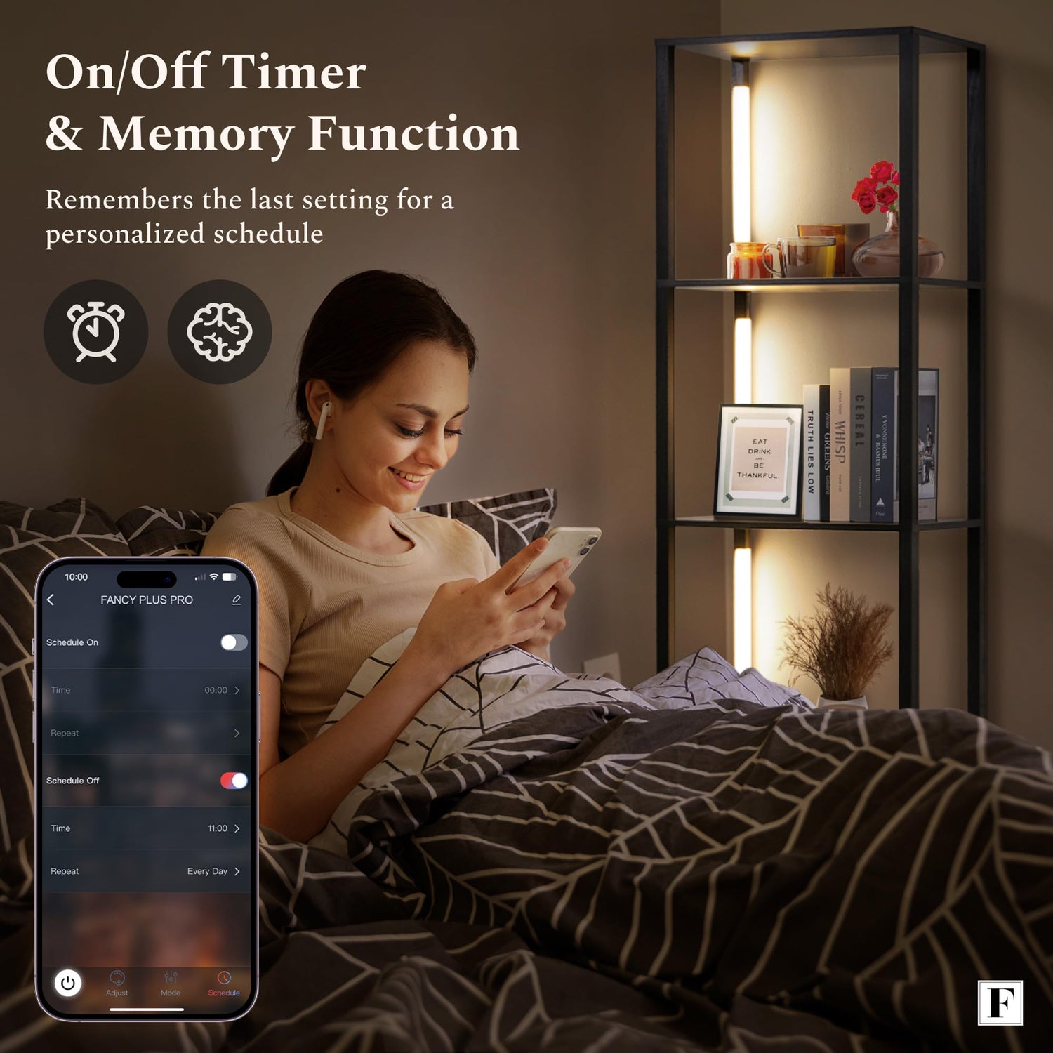 - APP AND REMOTE INTEGRATION - You can now connect your shelf lampto our app and/or use the remote control it comes with! Effortlessly turn your floor lamp with shelves on/off through it, adjust the color temperature, and unlock presets for a customized LED display experience.