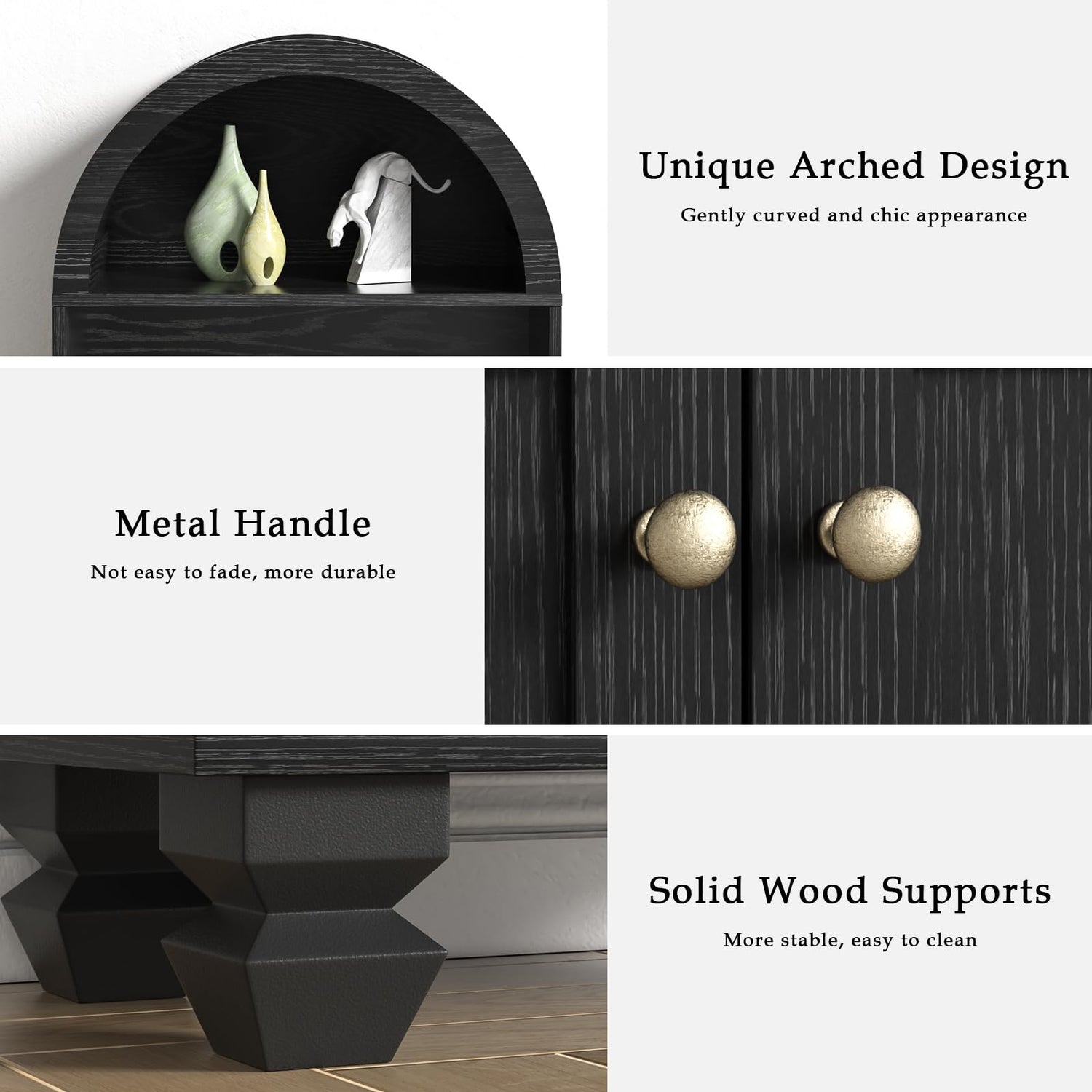 Giluta 71" Tall Arched Bookshelf Two Doors 5-Tier Storage Display Cabinet with Open Display Shelf & Drawer, Black Kitchen Pantry Cabinet for Living Room, Dining Room