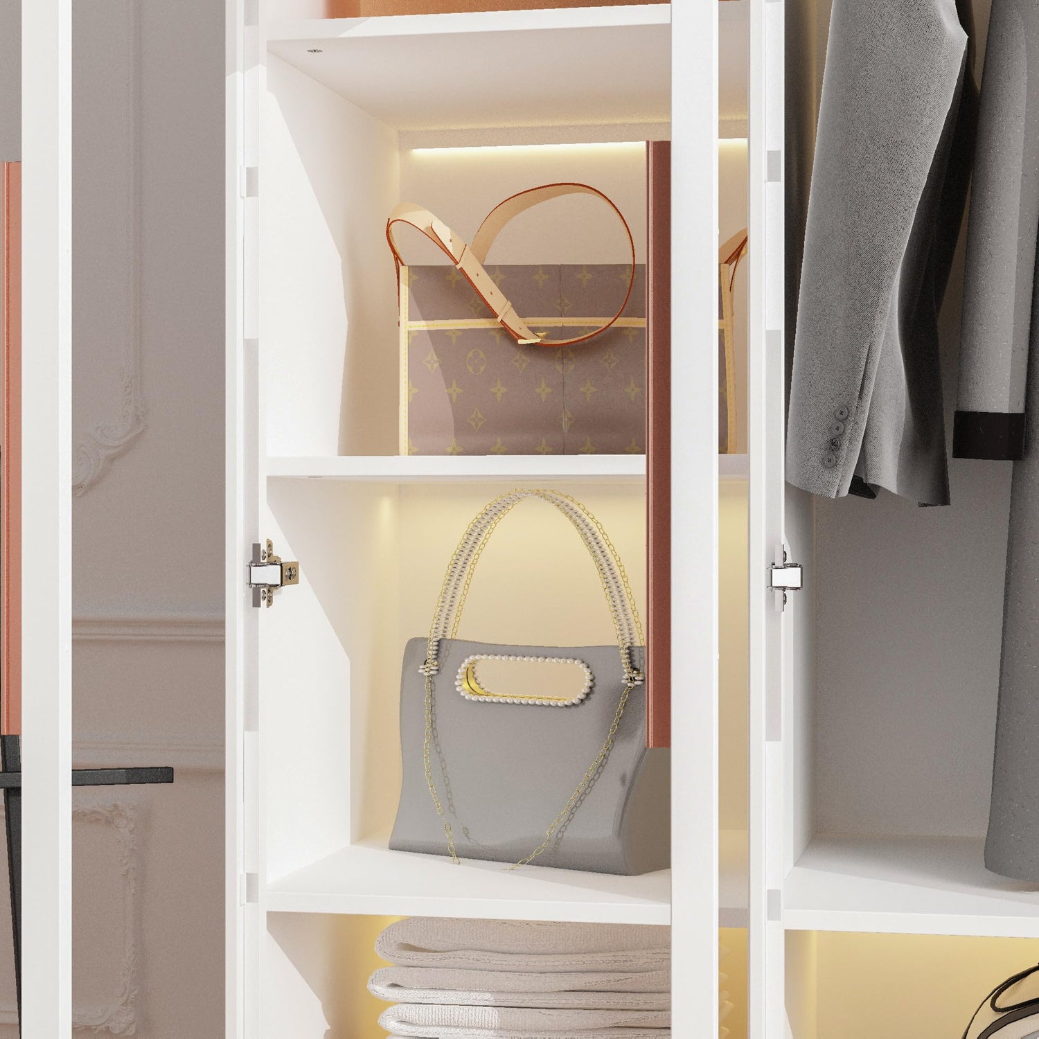 Homsee 5-Tier LED Bookshelf with Glass Doors and Hanging Bar, White Storage Cabinet