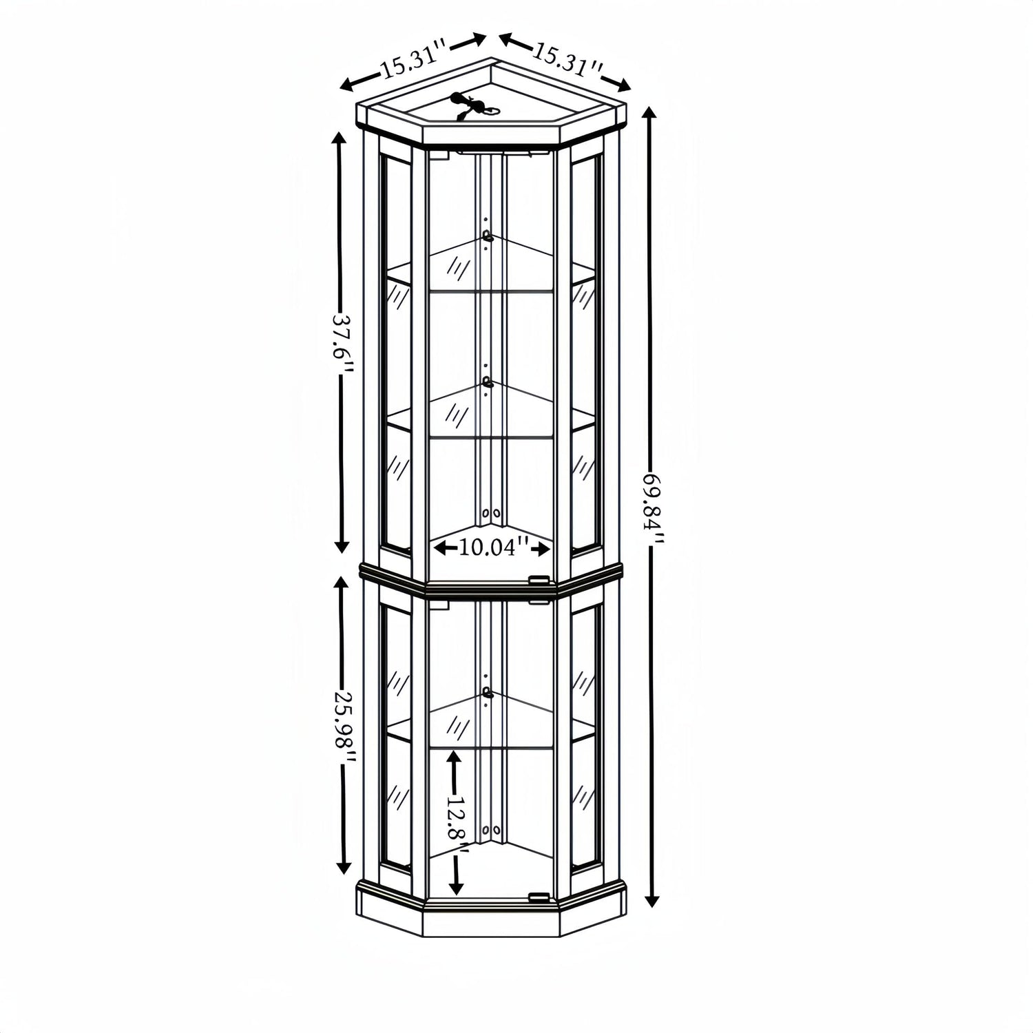 - [Ample Storage] : With 4 adjustable tempered glass shelves, this corner curio cabinet offers versatile storage for your prized collectibles. Adjust shelves to showcase items optimally, while the removable design allows for displaying taller pieces. Organize and display your treasures with sophistication