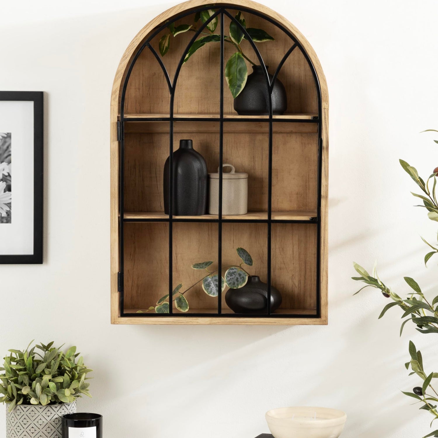 - Charming Curio Cabinet: The Megara wall cabinet provides function and style with decorative charm due to its arched shape