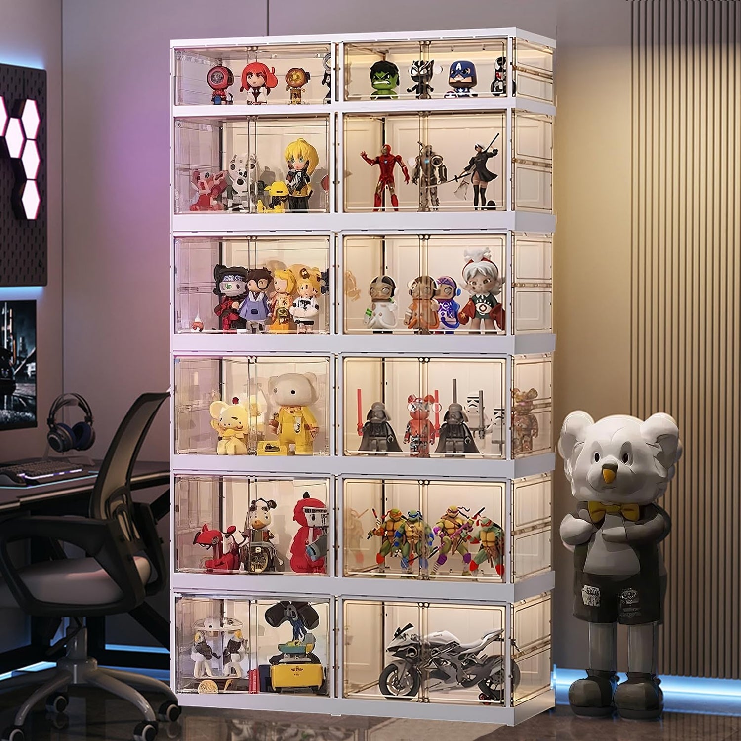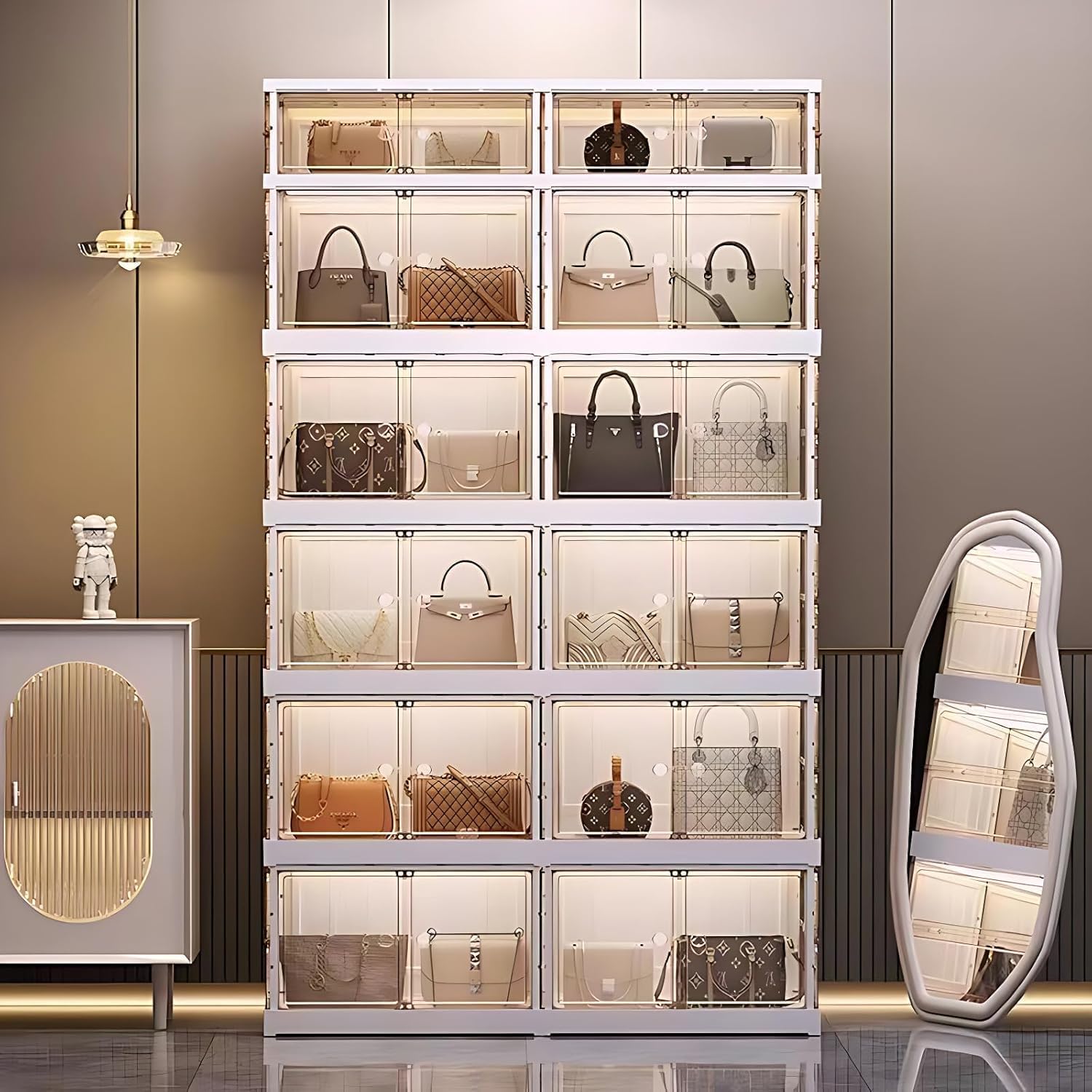 • 【Versatile】As a display cabinet, it can be used to show your characters, bags, antiques and other such collections. As a storage cabinet, it has a large storage capacity and can be widely used in bedrooms, bathrooms, laundry rooms, closets, dormitories or offices - for storing toys, snacks, photo frames, clothes, books, shoes, hats, cosmetics and more.