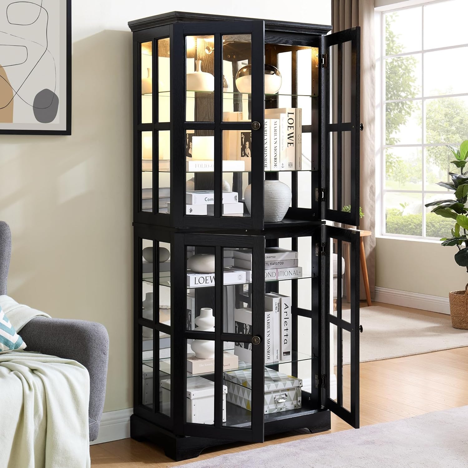 LuxyHoom Lighted Display Curio Cabinet Elegant China Cabinet Featuring 6 Shelves and 69 Inch Height for Premium Home Decor Storage Solutions(Black)