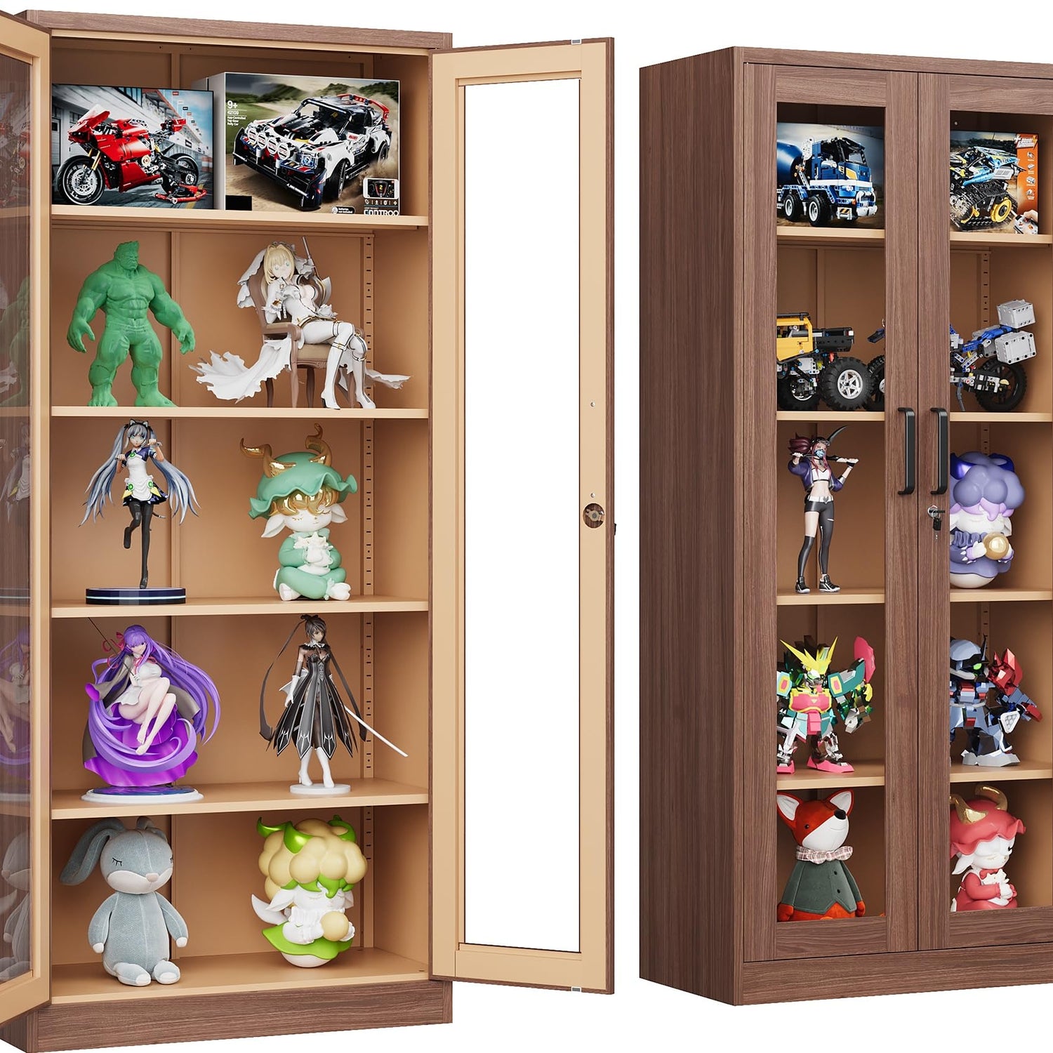 - 【Sturdy and Durable】: This curio display cabinet is made of strong and durable cold-rolled steel. Storage shelf with doors features a one-piece reinforced heavy-duty metal frame coated with a stain-resistant phosphor-free powder. It makes the glass door cabinet of surface scratch-resistant, and rust-resistant, keeping your valuable items safe and secure.