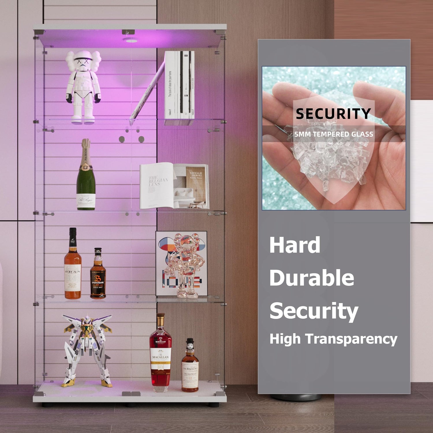 • 【Sturdy and Durable】This curio cabinet is made of high-strength tempered glass and solid wood panels, which can effectively reduce the breakage of glass. There are cushioning strips between the glass panels and sides to maximize safety, durability and practicality in daily use. The glass door helps prevent dust and protects your collection well.