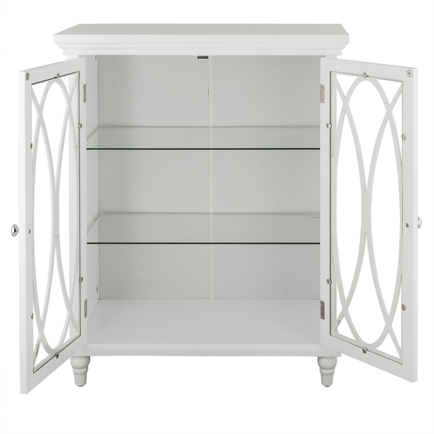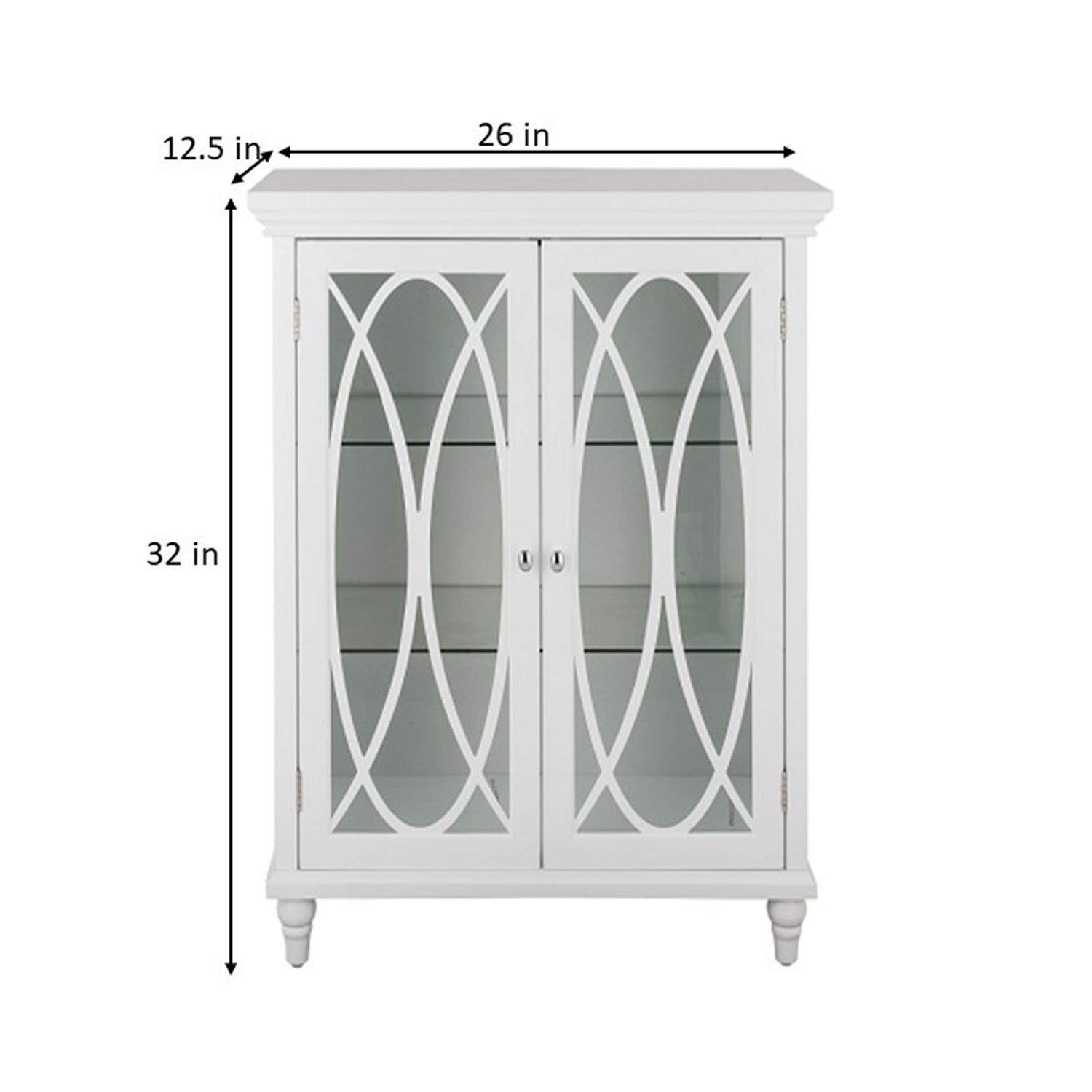 Details: The Teamson Home Florence Freestanding Wooden Floor Cabinet is a functional and decorative storage solution featuring tempered glass doors with oval design, crown molding, and decorative feet in a classic white finish. This versatile piece features engineered wood and two interior tempered glass shelves to create a customized storage unit or a small display case. Doors remain securely closed thanks to magnetic latches. Affordable, this storage cabinet can be a focal point in your decor. Since 1997, Teamson Home has been a dedicated global lifestyle home design brand bringing joy into every home through beautiful, quality pieces made for stylishly comfortable everyday living.