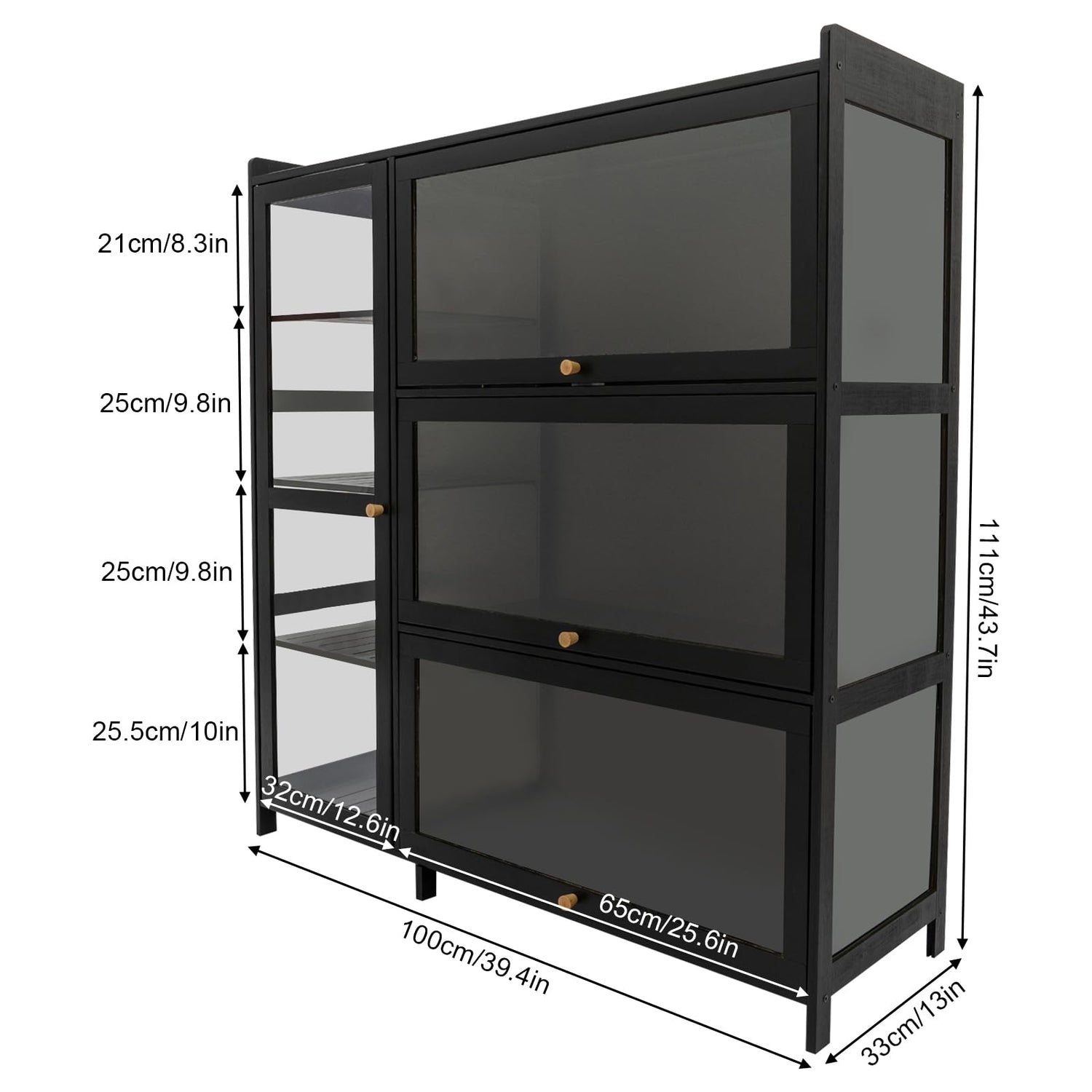 • 【Simple Appearance】: The classic black color, smooth line texture, and simple style make the whole display cabinet retro and solemn which can decorate rooms of different styles.