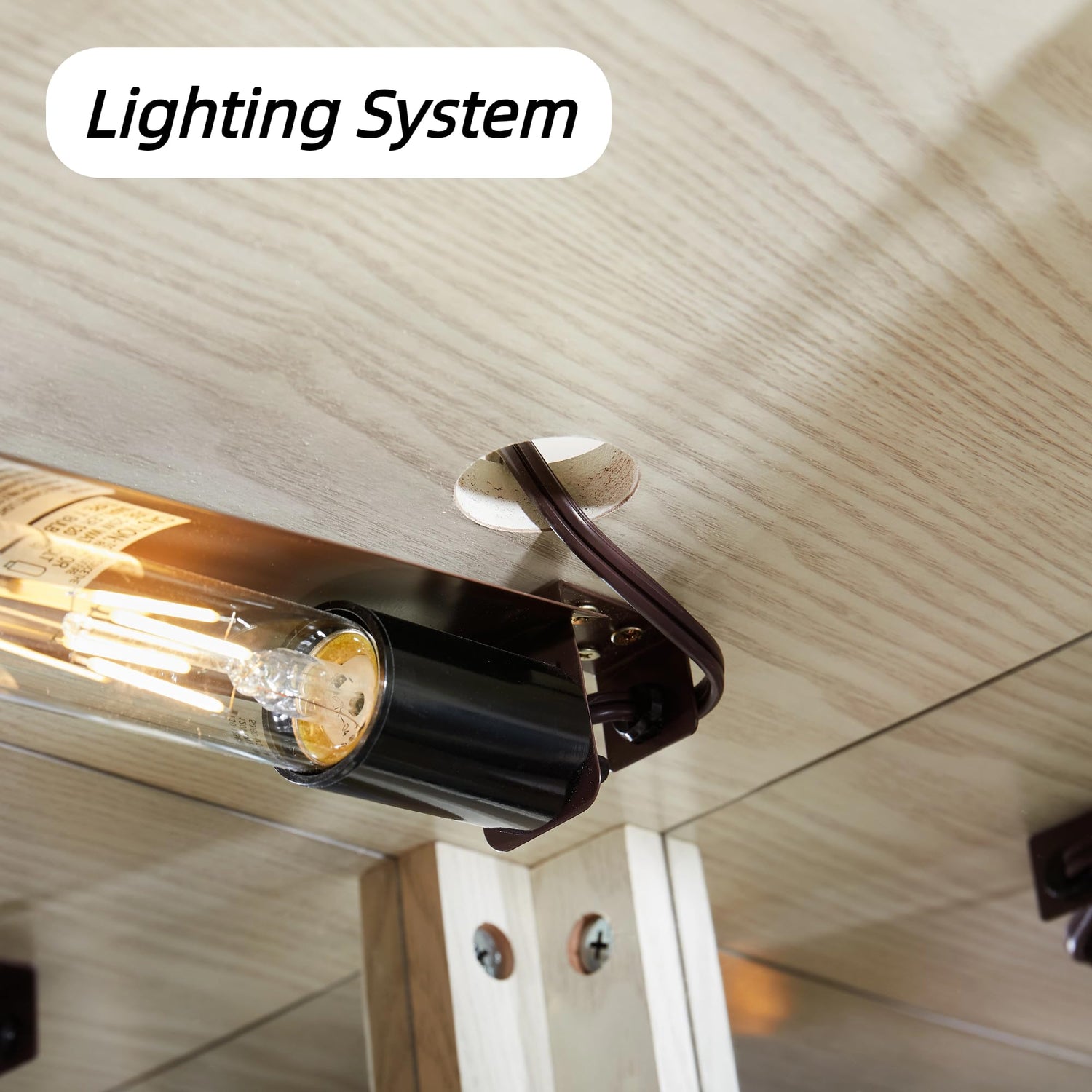 - Functional Elegance: The side-hung glass pane doors are divided into two sections, offering both functionality and aesthetic appeal. The adjustable shelves allow for customizable organization, ensuring that your items are displayed in the most optimal manner. The included light enhances the sophistication of the cabinet, casting a gentle glow on your prized possessions