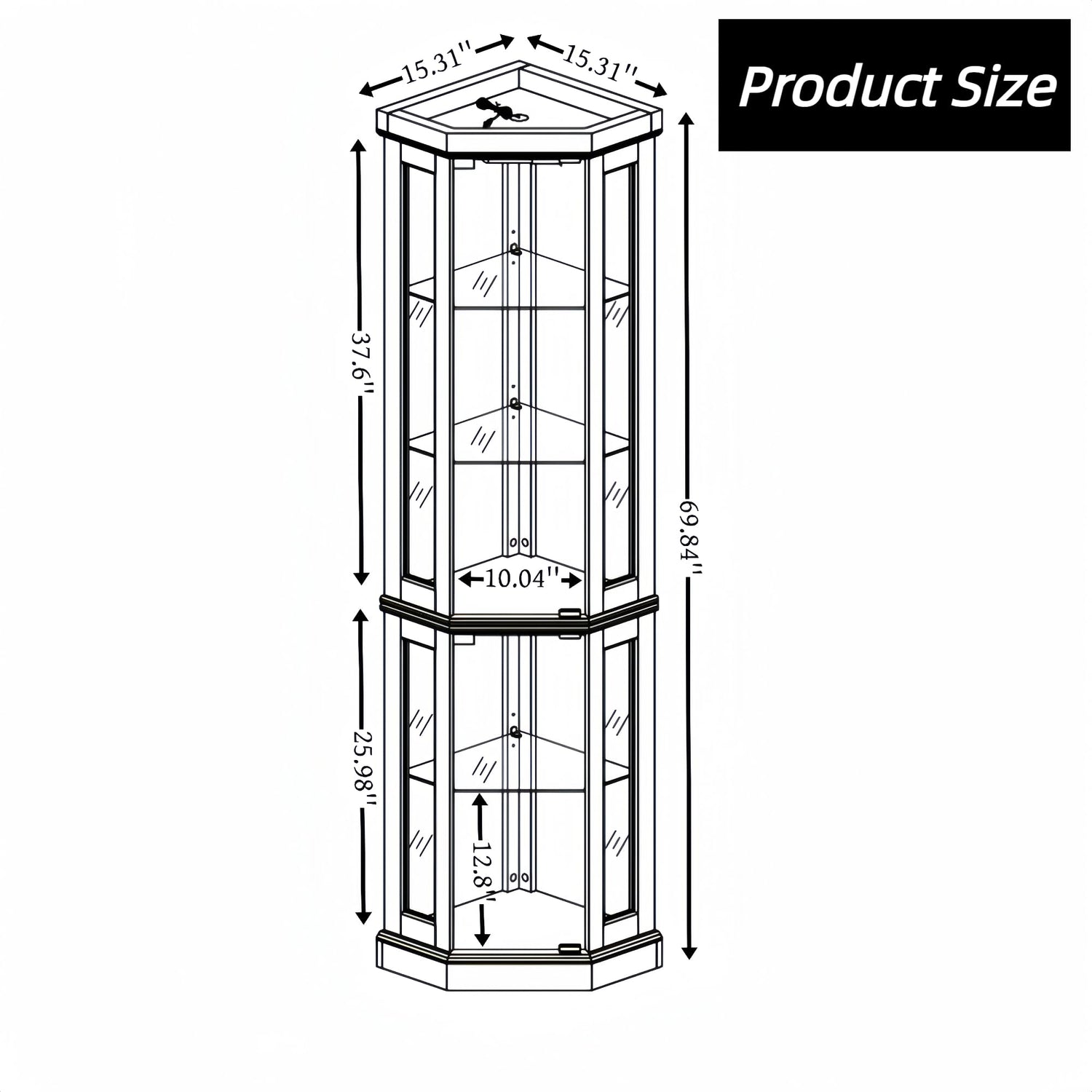 - Space-Efficient Design: This corner curio cabinet is designed to fit snugly into the corner of your home, maximizing space while maintaining a sleek and stylish appearance. Its compact yet spacious design allows you to display your favorite items without overwhelming the room, making it an ideal solution for both small and large interiors
