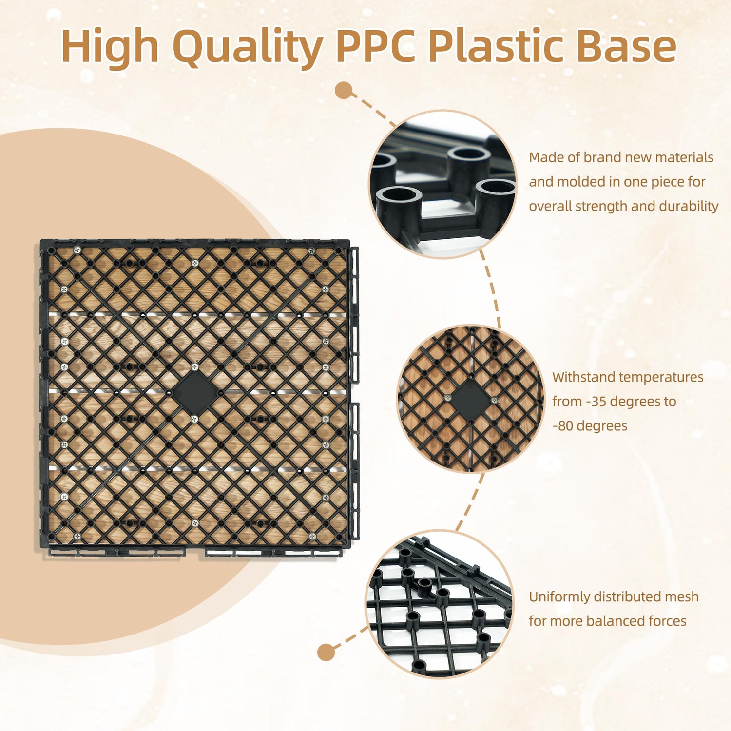 - ๐๐ข๐ ๐ก-๐ช๐ฎ๐๐ฅ๐ข๐ญ๐ฒ ๐๐๐ ๐๐๐ฌ๐ ๐๐ง๐ ๐๐ข๐ฆ๐ฉ๐ฅ๐ ๐ญ๐จ ๐๐ง๐ฌ๐ญ๐๐ฅ๐ฅ: The ppc base we use is made from brand new material, not recycled, that's why the quality is better, and it can withstand temperatures from -35 degrees to -80 degrees. Our cedar wood flooring tiles are designed for simple installation just by assembling the joints, no complex tools are needed and everyone can do it real quickly.