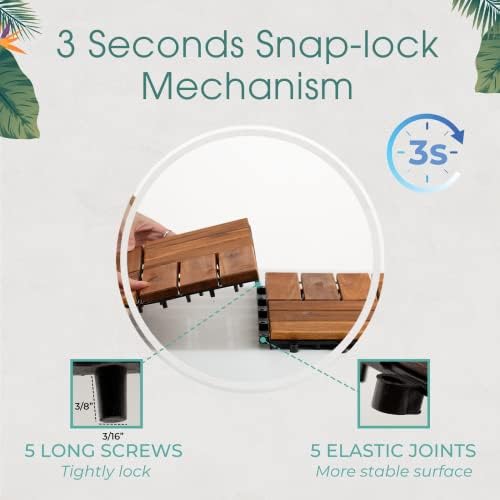 - DECK YOUR SPACE: Deck Tiles are stunning choices to switch up your boring ground; Our interlocking deck tiles come in a variety of slat styles, and colors, from elegant dark brown to dazzling golden teak so you can get any look you want