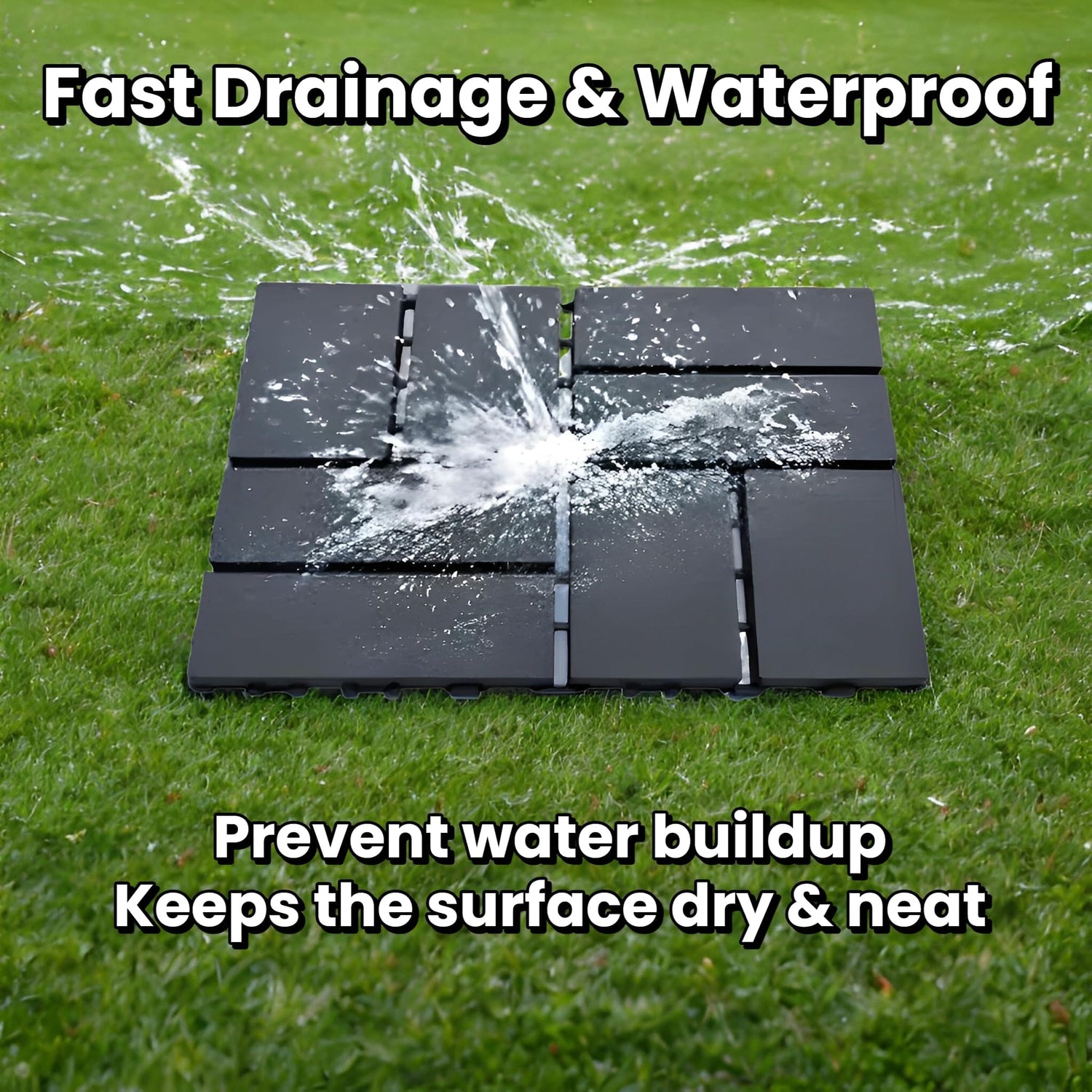 - VERSATILE INDOOR-OUTDOOR USE:Adapts to balconies, garages, RV floors, temporary events, or uneven surfaces. Compatible with concrete, tile, wood, and tightly packed soil. Lightweight tiles can be disassembled and reused seasonally. Clean by rinsing with water or wiping—no special treatments required.
