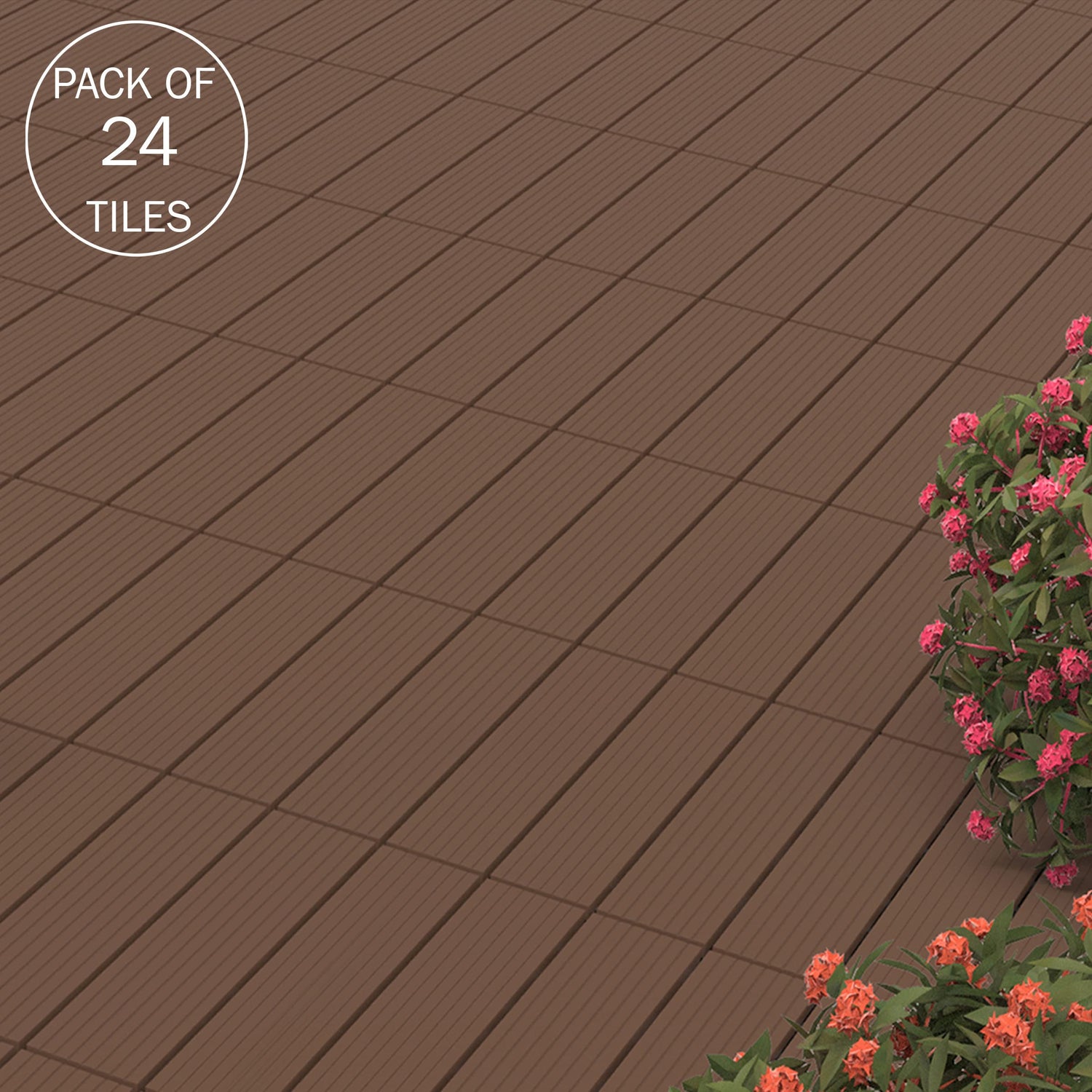 Pure Garden Patio and Deck Tiles - 24-Pack Interlocking 12x12 Wood Plastic Composite Weather-Resistant Outdoor Flooring Pavers (Brown)