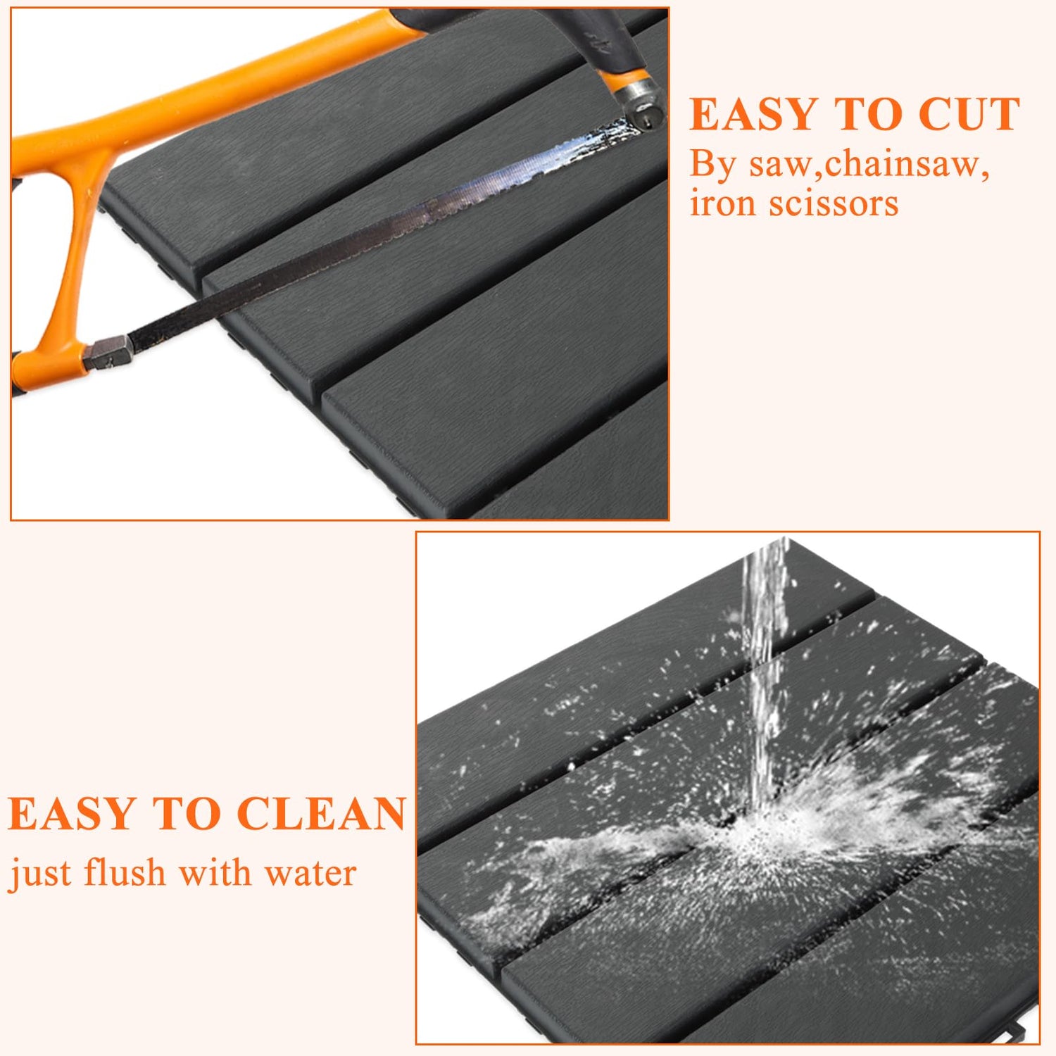 - 【Easy to Clean】These interlocking floor tiles are easy to clean--use dry/damp rags, mop or vacuum for indoor use, and simply flush with water for outdoor use, Very suitable for busy family to make your life more convenient