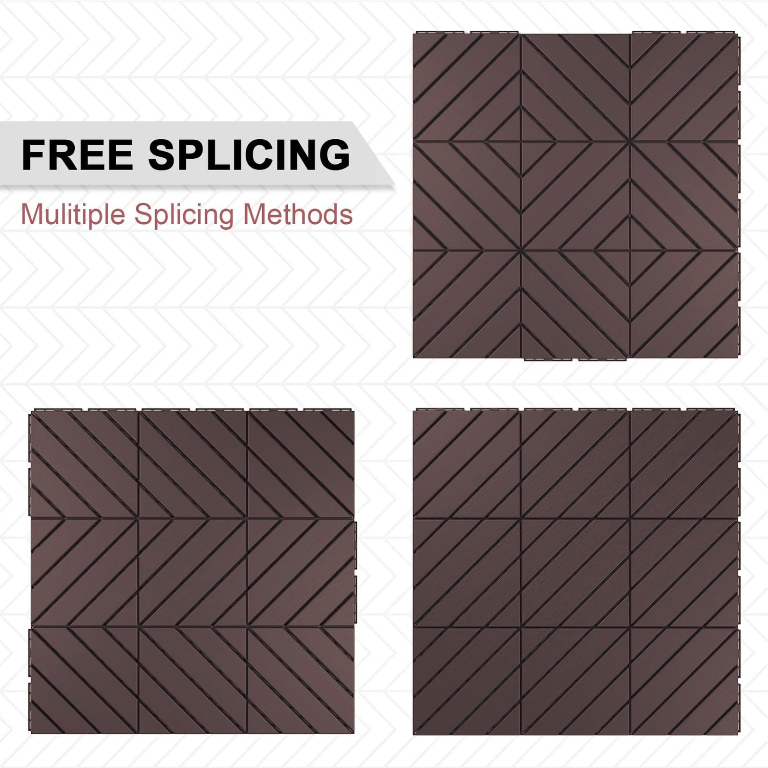 VANCASTLE Interlocking Floor Tiles, 12" x 12" Outdoor Flooring,All-Weather Waterproof Deck Tiles for Patio/Poolside/Garage/Gym, 1 Sq Ft Coverage per Tile, Easy to Install, Dark Brown/36 Pack