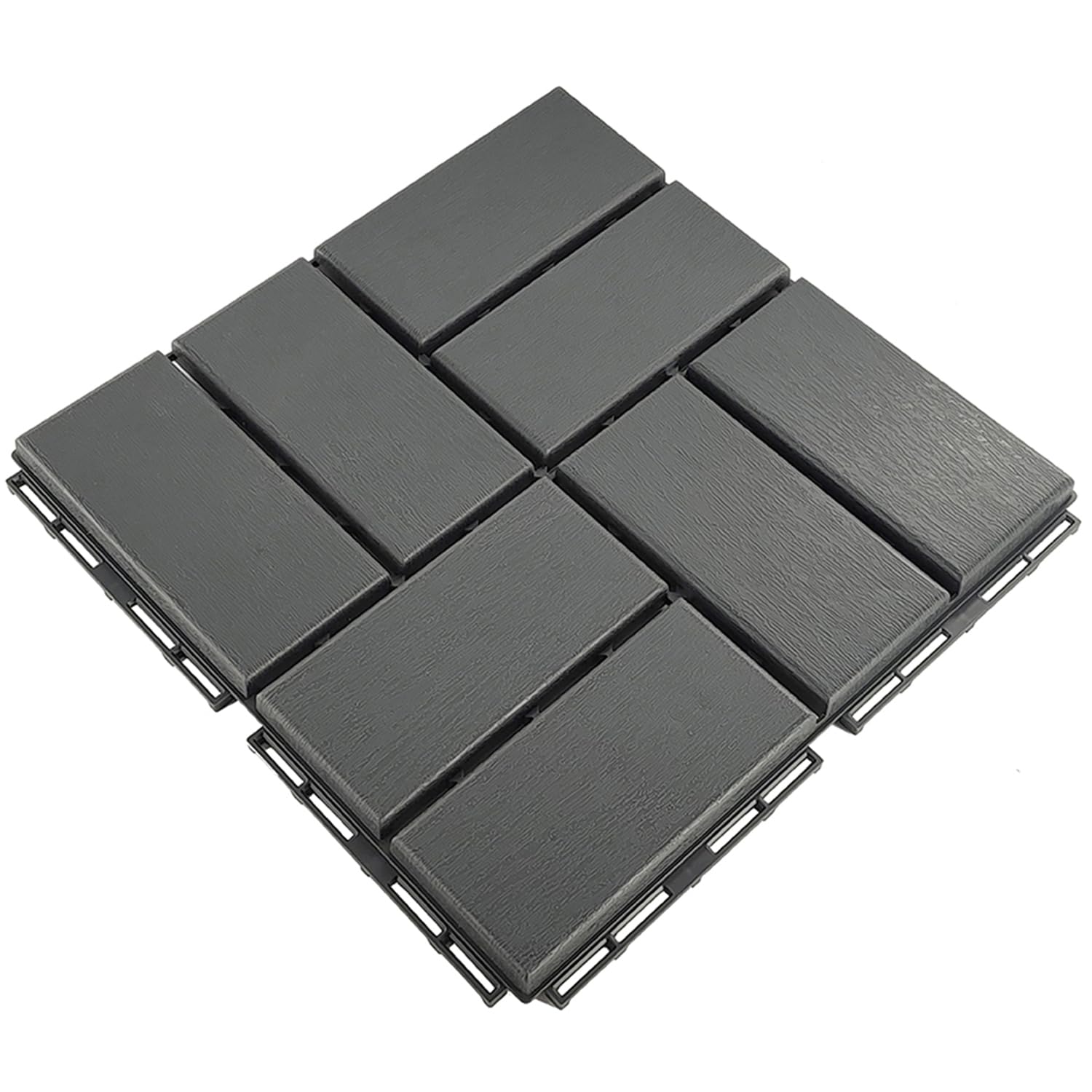 Waterproof Plastic Interlocking Deck Tiles, 9-Pack, 12"x12" | All-Weather Outdoor Flooring for Porch, Poolside, Balcony, Backyard (12''*12'', B-DarkGrey, 9)