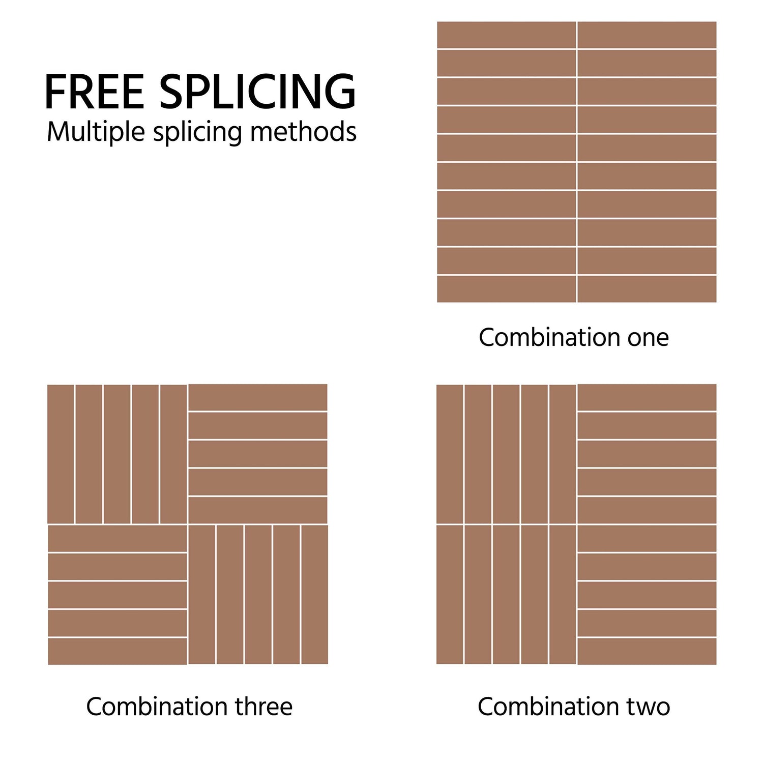 • WIDE APPLICABILITY : Our wood flooring tiles are great materials for house renovation and patio designs. You can place these tiles on any hard surface like cement, wood floor, or on the carpet. Due to their good quality and durability, they can be applied both indoors and outdoors, like the deck, poolside, balcony, gazebo, greenhouse, bathroom, etc