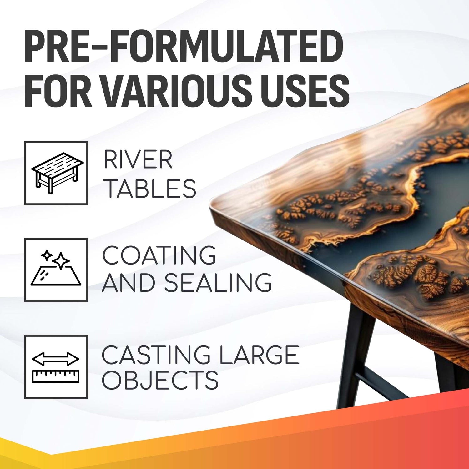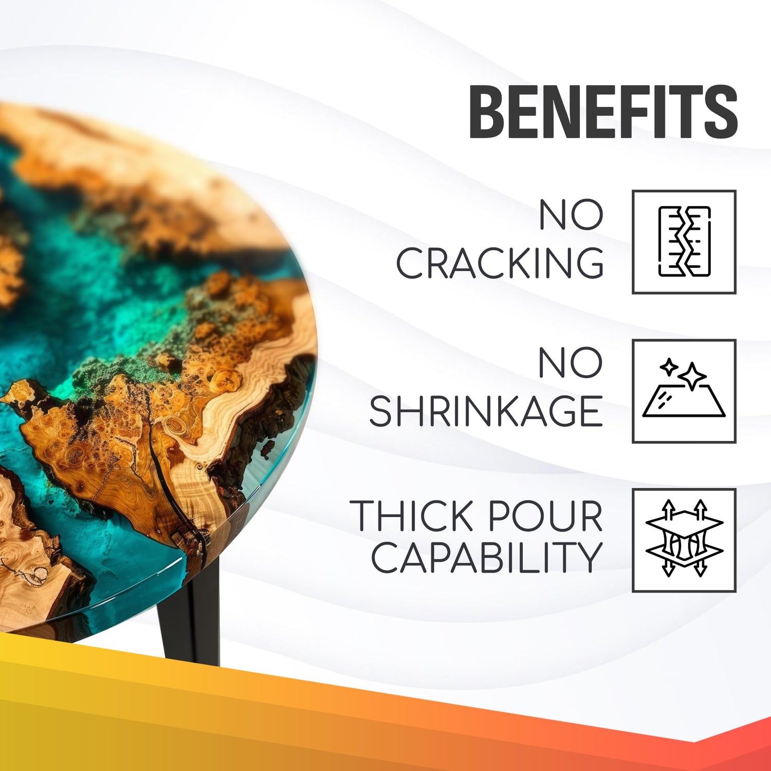 - Versatility in Applications: It is ideal for a wide range of projects, including river tables, large artwork, and encapsulating objects. Its ability to pour deeply allows for creative and structural flexibility.