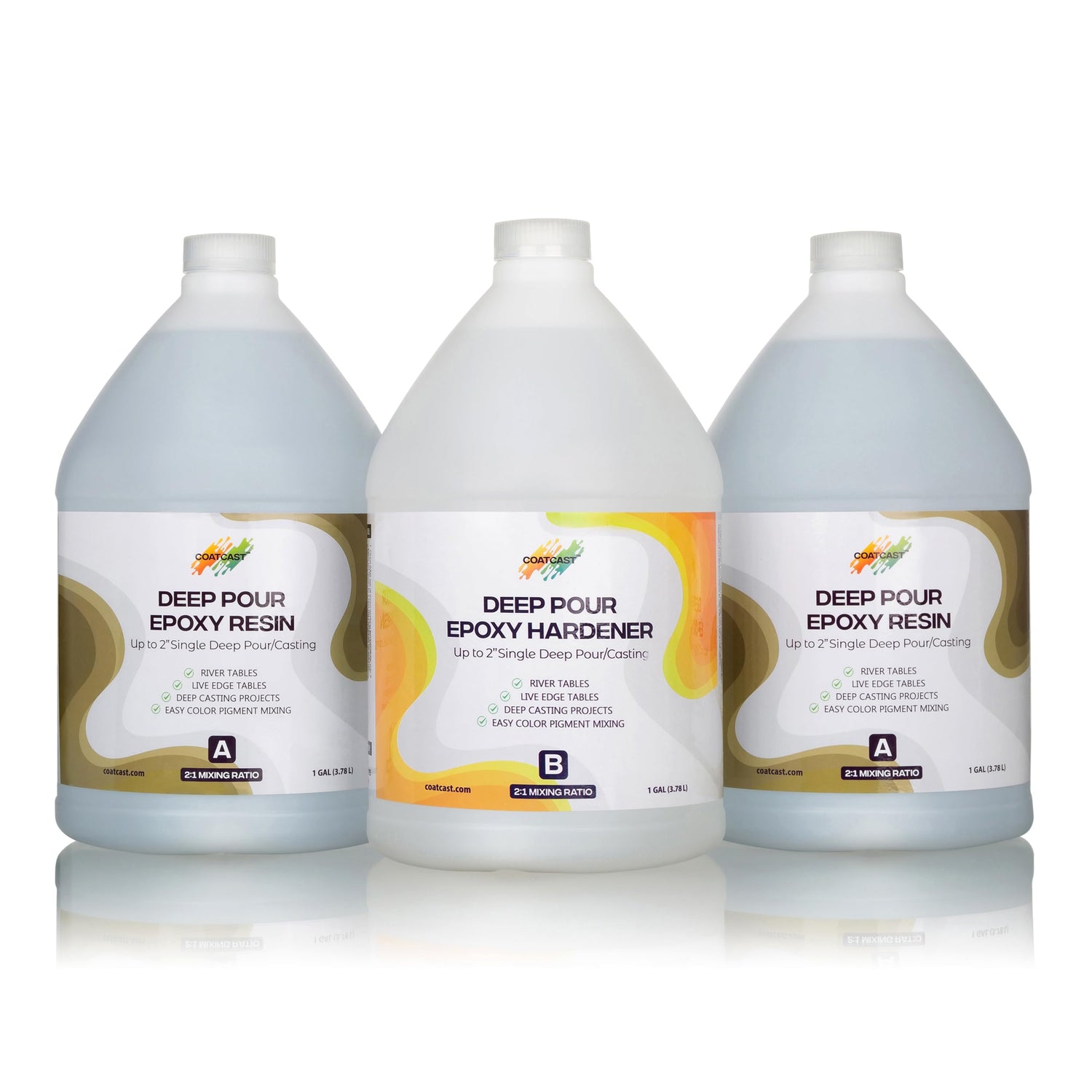 CoatCast Deep Pour Epoxy Resin 3 Gallon Kit – for Casting up to 4 Inches Deep | 2:1 Mixing Ratio | Water Clear, No Bubbles, Self-Leveling | Perfect for River Tables, Casting Large Objects and More