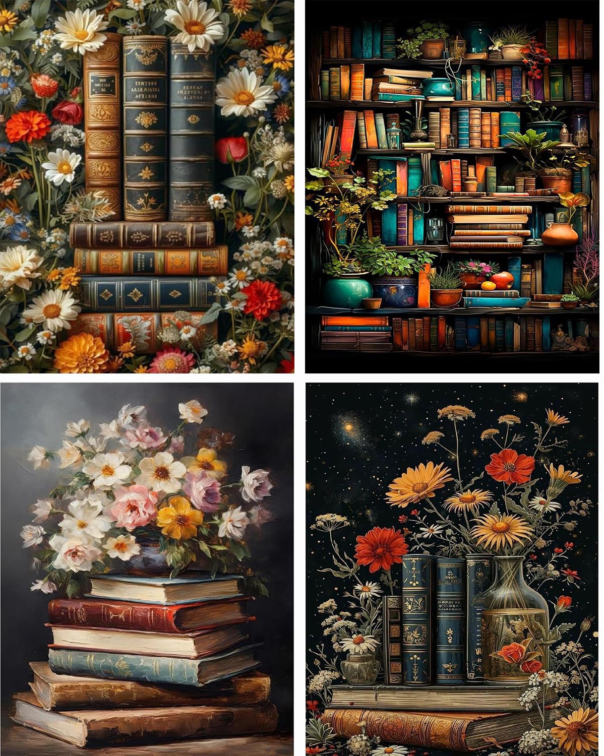 4 Pack Book Flower Diamond Art Kits for Adults Beginners,Full Round Drill DIY Diamond Painting Kits,Paint by Diamonds Dot Gem Art Crystal Easy,Home Wall Decor 12X16Inch