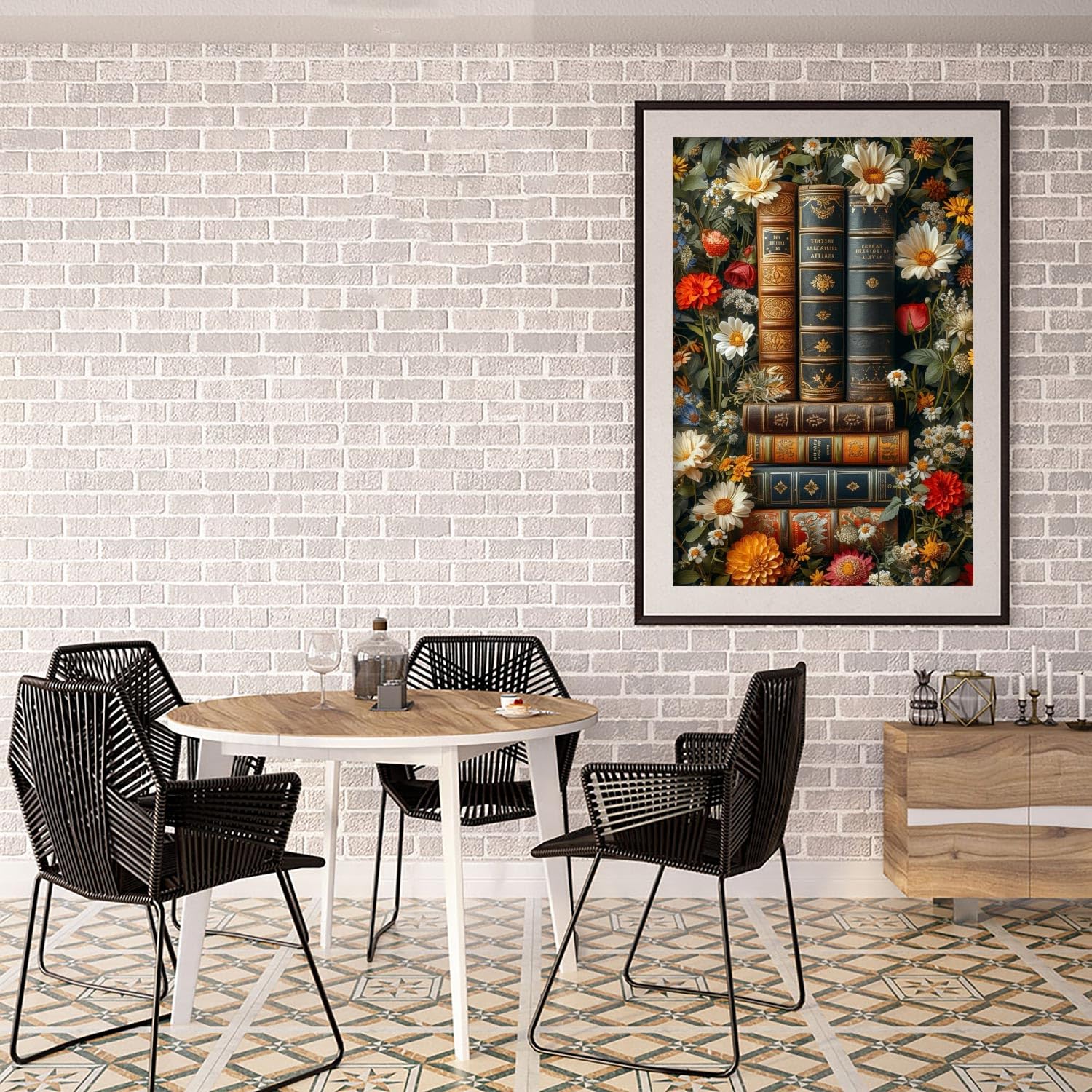 Books Diamond Art Kits for Adults, Flower 5D Diamond Painting for Adults, Gem Painting Kit Parts for Wall Home Decor Arts Craft 12x16 inch