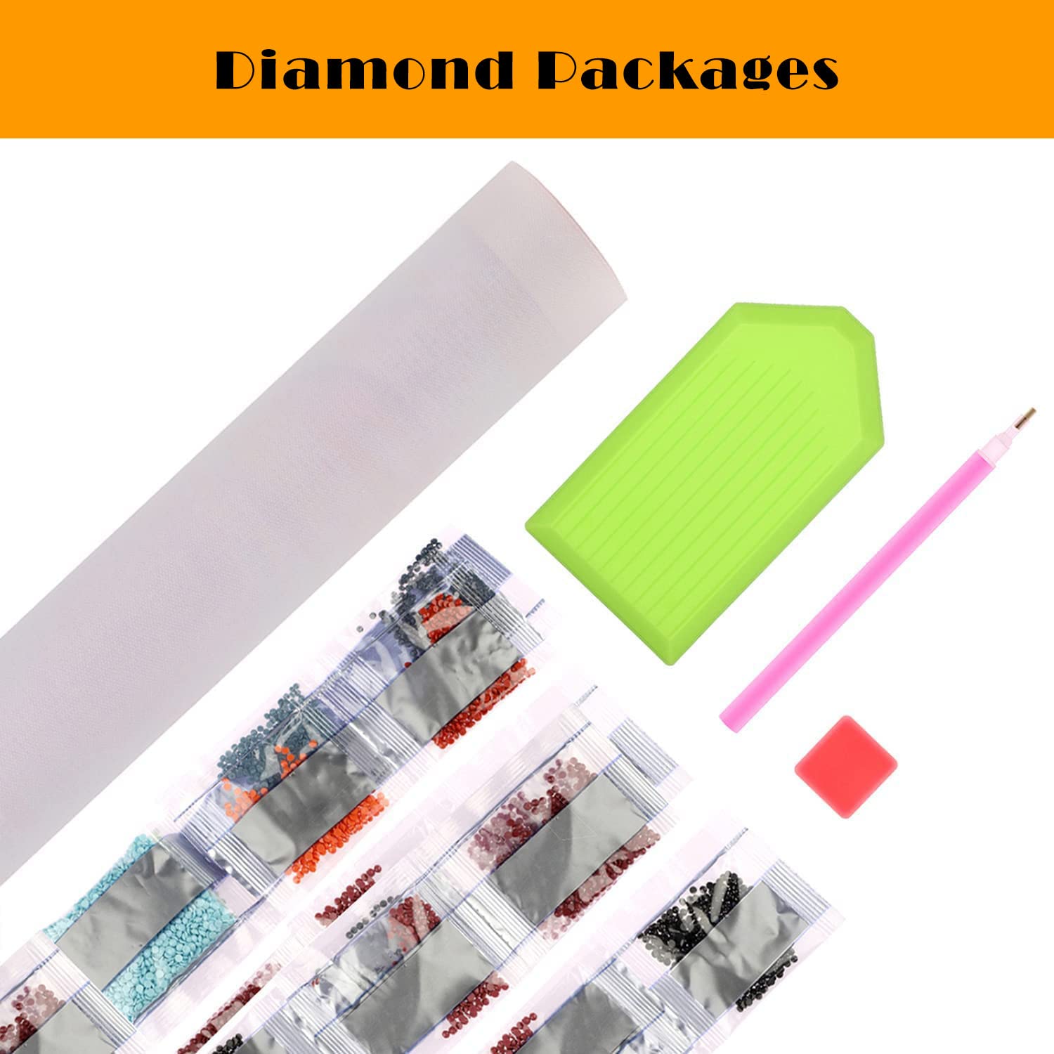 • What you get: 1*high definition painting canvas, 1*point diamond pen, 1*cube diamond tray, 1*red glue clay, enough colorful round diamonds (extra 30% beads) and satisfied smile back