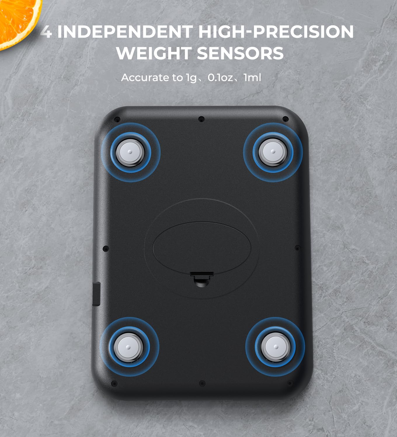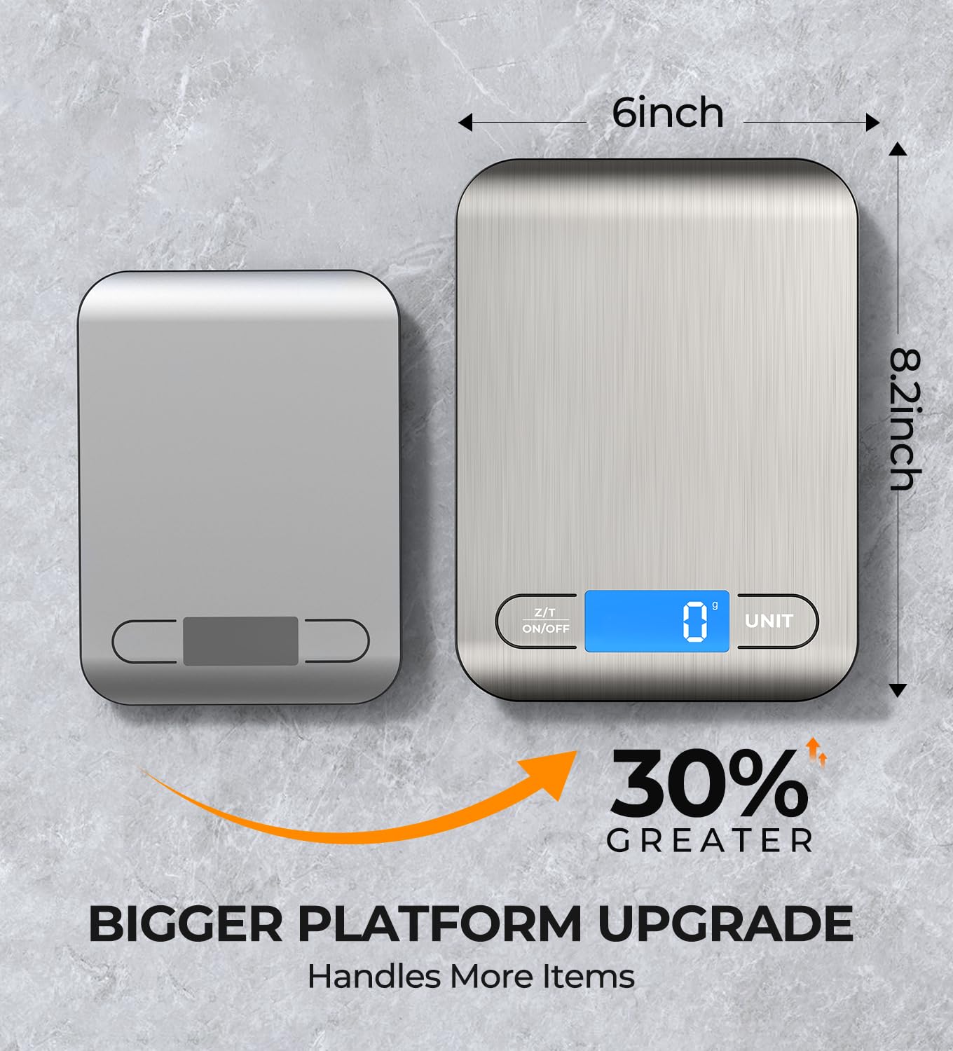 - ๐๐๐ซ๐ ๐ ๐๐ข๐ณ๐ : The dimensions are 8.2 * 6.0 * 0.7 inches, which is 30% larger than the old model. This means it can provide more stability and space for larger containers. Larger LCD screen and added backlight, so you can read the numbers clearly even in a dark environment.