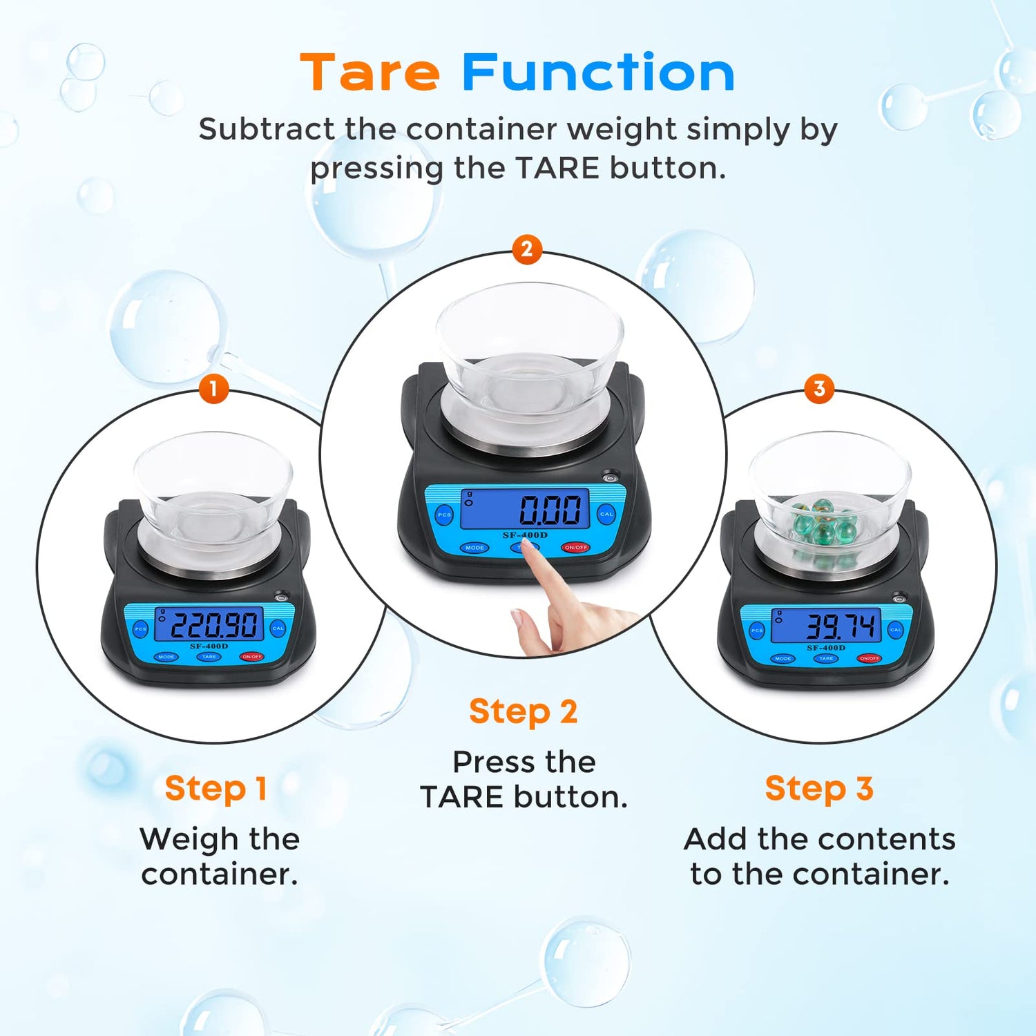 - Functions- This digital scale offers a variety of useful functions: 1. Counting Function: Ideal for counting small items with consistent weights; 2. Tare Function: Subtract the weight of containers with just one press, allowing you to weigh only the contents; 3. Auto-Off Feature: To conserve battery life, the scale will automatically turn off after 270 seconds of inactivity.