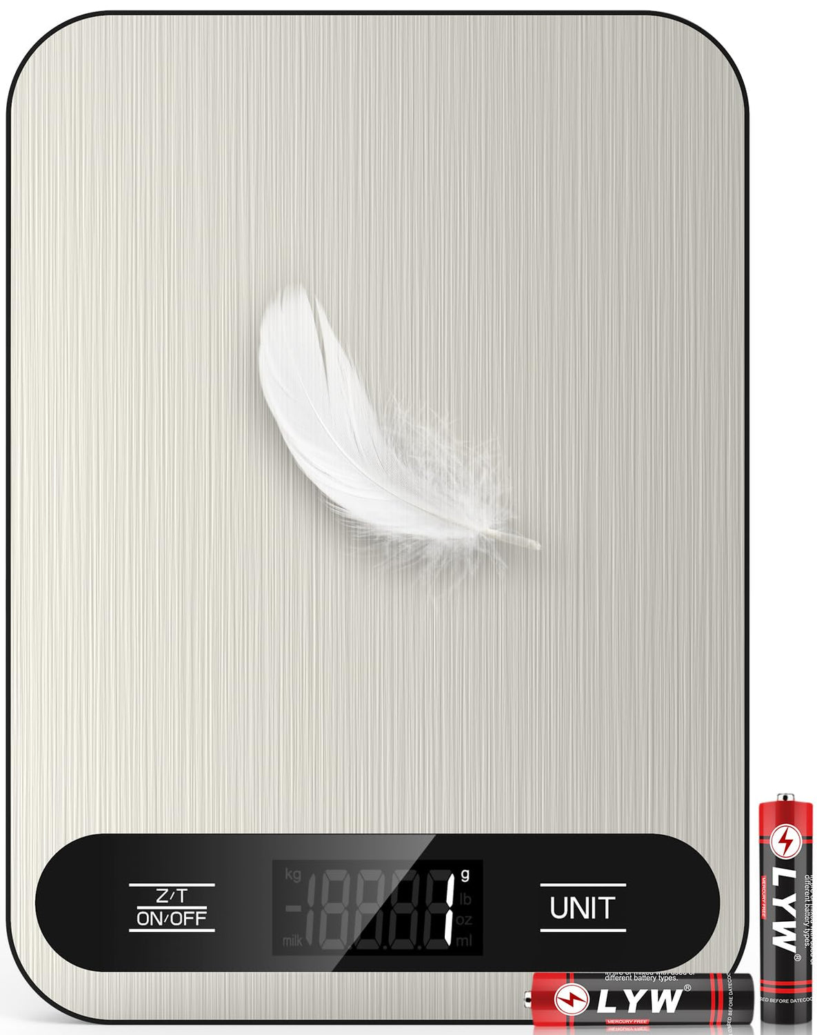 - 【Multifunction Unit】The food scale supports 6 unit conversions: g, kg, lb, oz, ml, milk ml. Includes 2 AAA batteries.