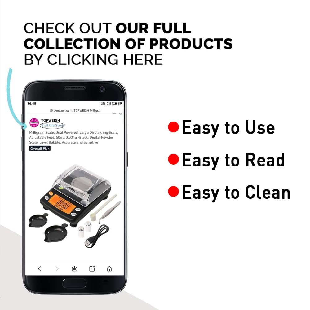 TOPWEIGH Milligram Scale, Dual Powered, Large Display, mg Scale, Adjustable Feet, 50g x 0.001g -Black, Digital Powder Scale, Level Bubble, Accurate and Sensitive