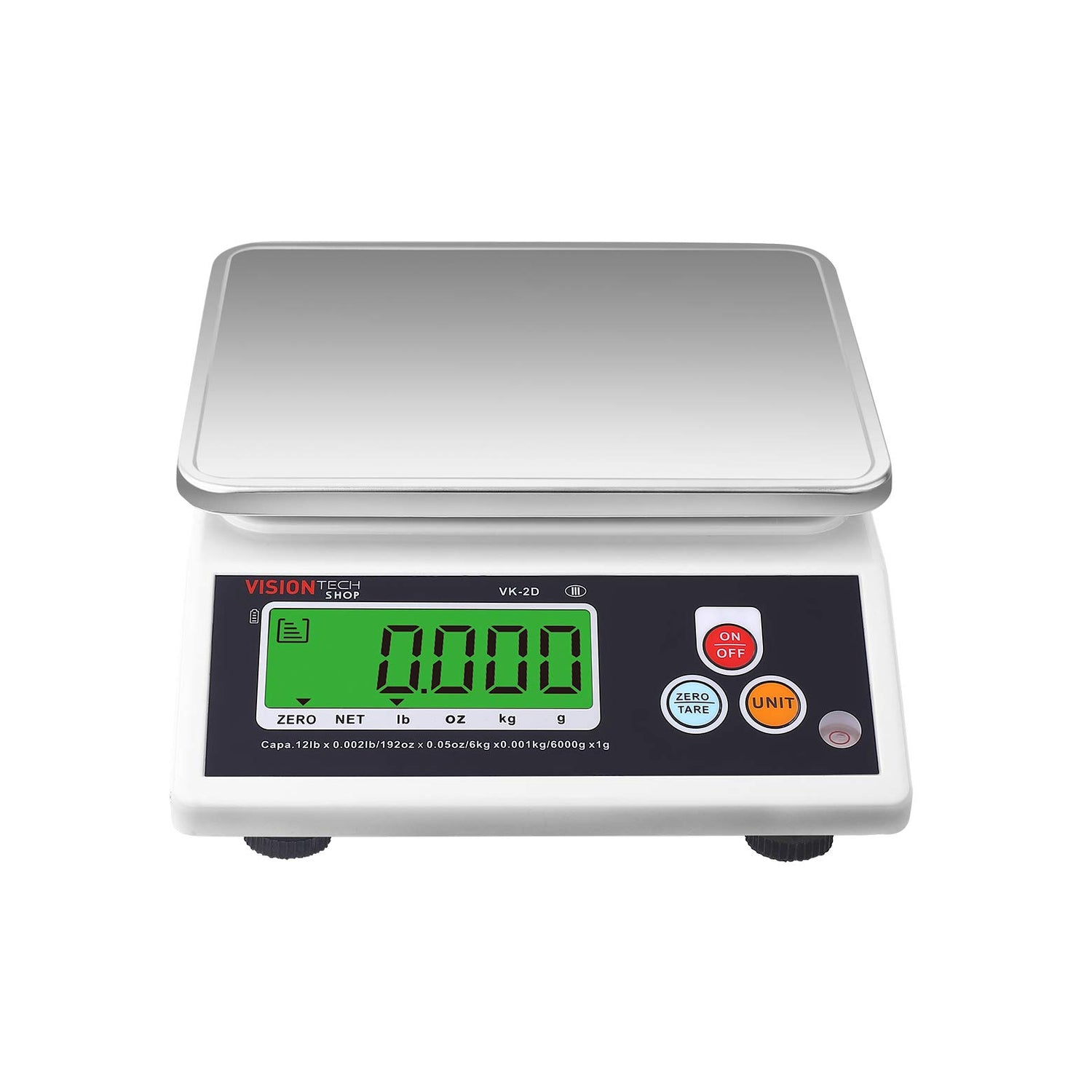VisionTechShop VK-2D 0.1g Premium Food Kitchen Scale, Lb/Oz/Kg/g Switchable, Stainless Steel Plate Food Scale, Large LCD Display with Backlight, 12lb Max Capacity, 0.001lb Readability