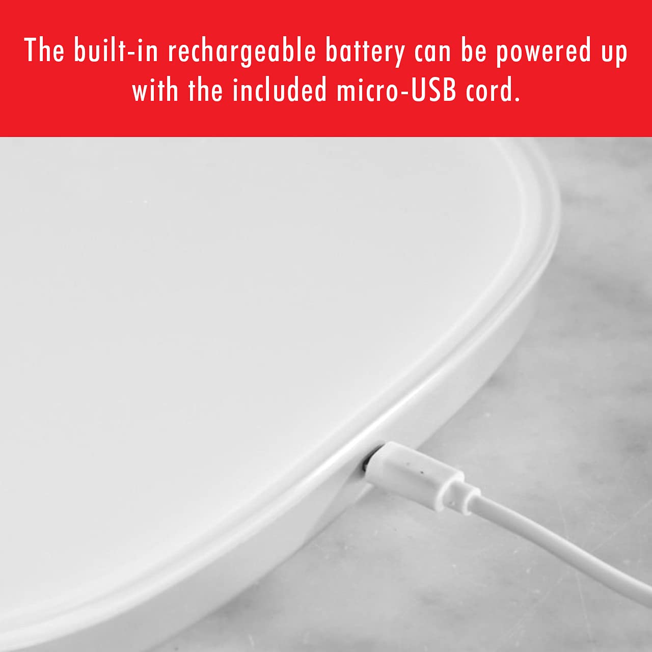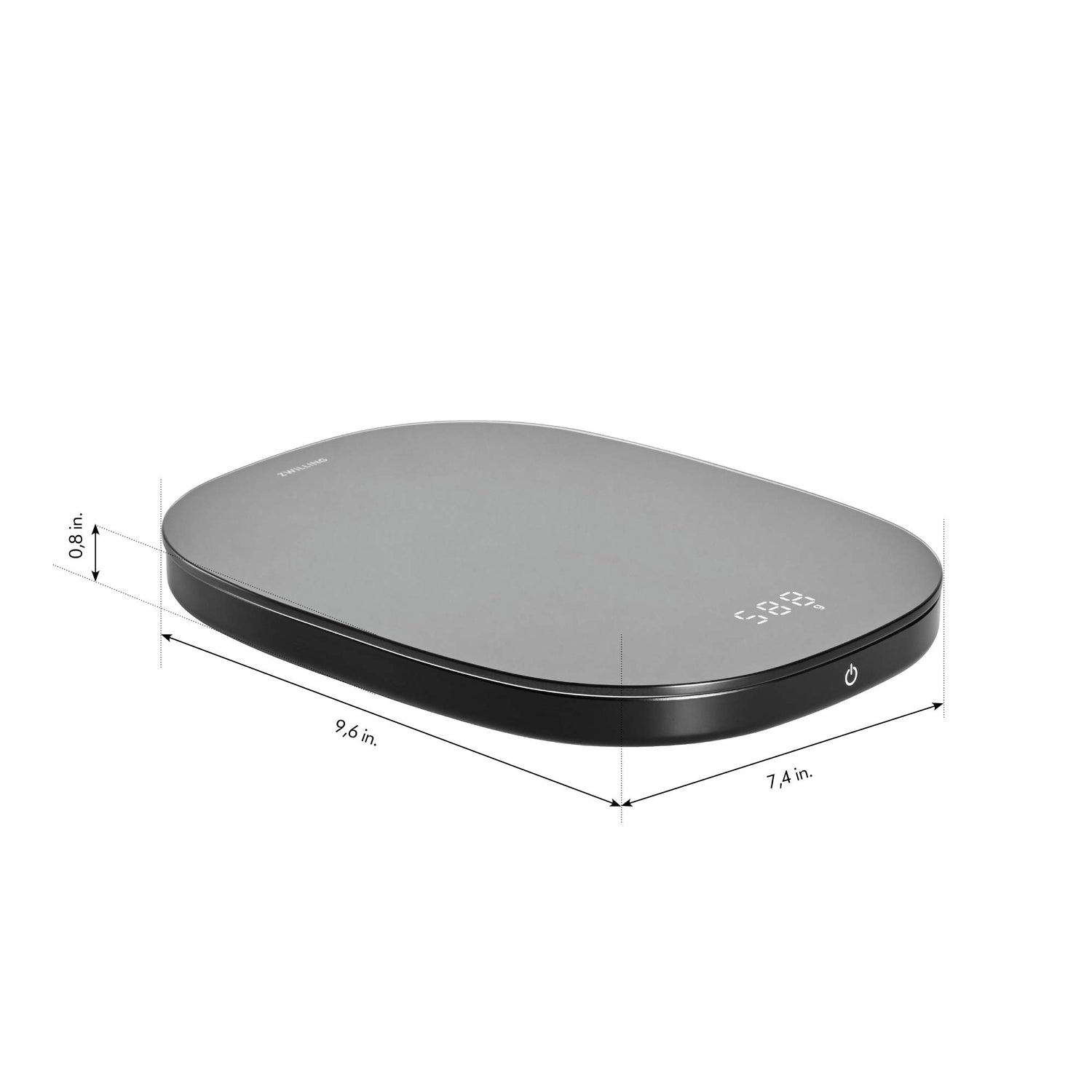 Details: This kitchen digital scale is sleek and cordless. The digital scale features touch control and a hidden display when powered off. A handy tare function and accuracy to .1oz/1g mean you will achieve precise results every time you measure. The built-in rechargeable battery can be powered up with the included micro-USB cord. Like all Enfinigy products, the digital scale offers a free downloadable app. The ZWILLING Culinary World App QR code on the product packaging fires up the app so you can search a database of original recipes.