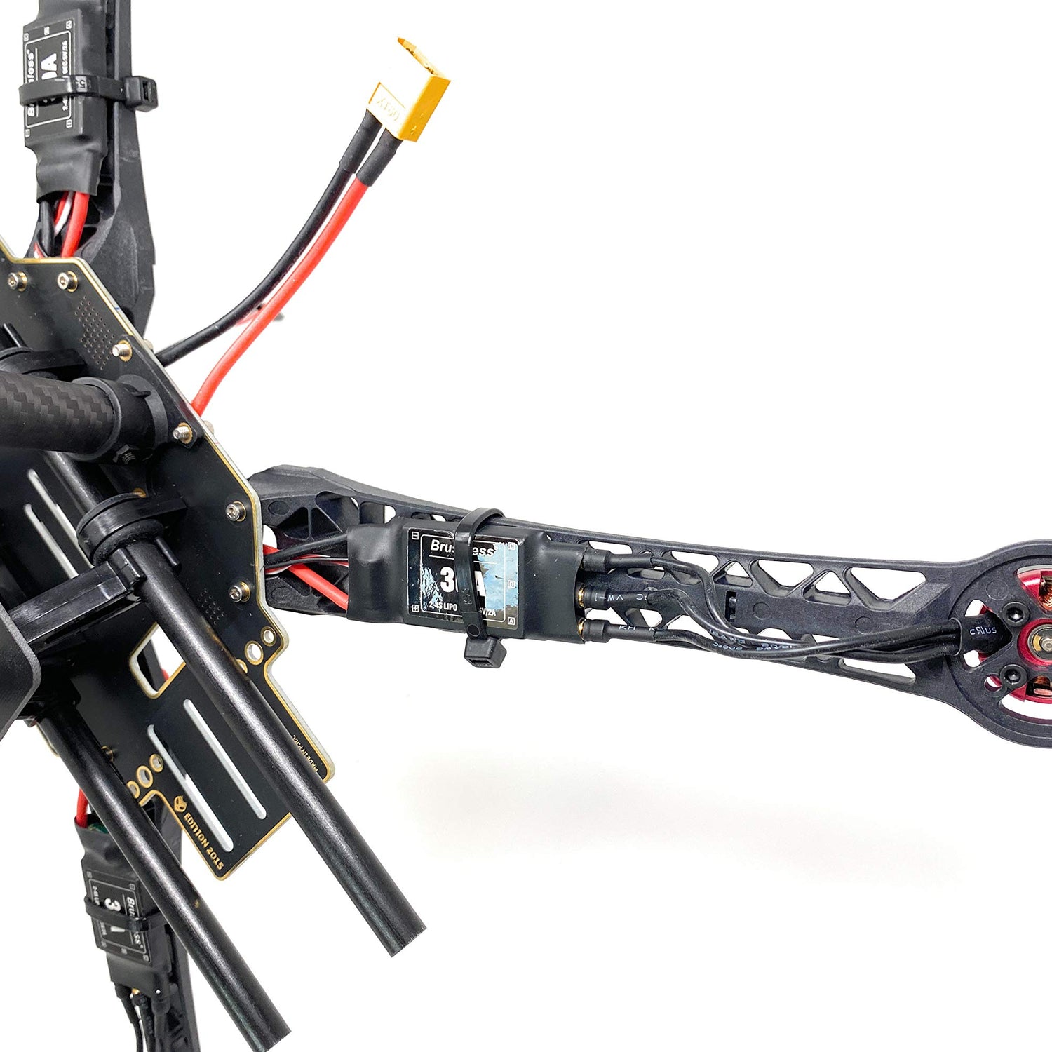 Details: S500 Quadcopter for DIY drone development kit PCB version with Carbon Fiber 30A 2-4S ESC with 2.5 mm Banana connector (4 pcs) REC Technology 2212-920KV Brushless motor (4 pcs) APM/Pixhawk Glass Fiber Shock Absorber 3D-printed Shock Absorber base mount (bonus item) for S500 frame (see the product images) XT60 Male Connector with 10CM 14AWG Silicone Wire Prop suggest: 10'' - 12'' (not included)
