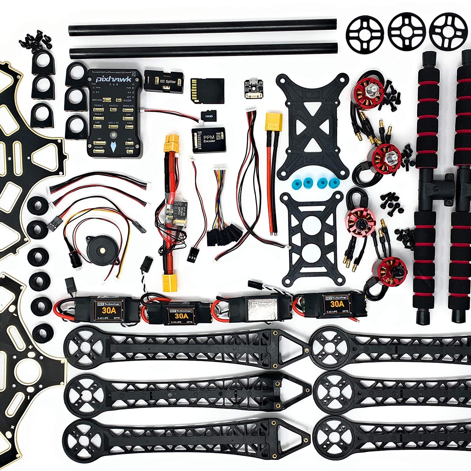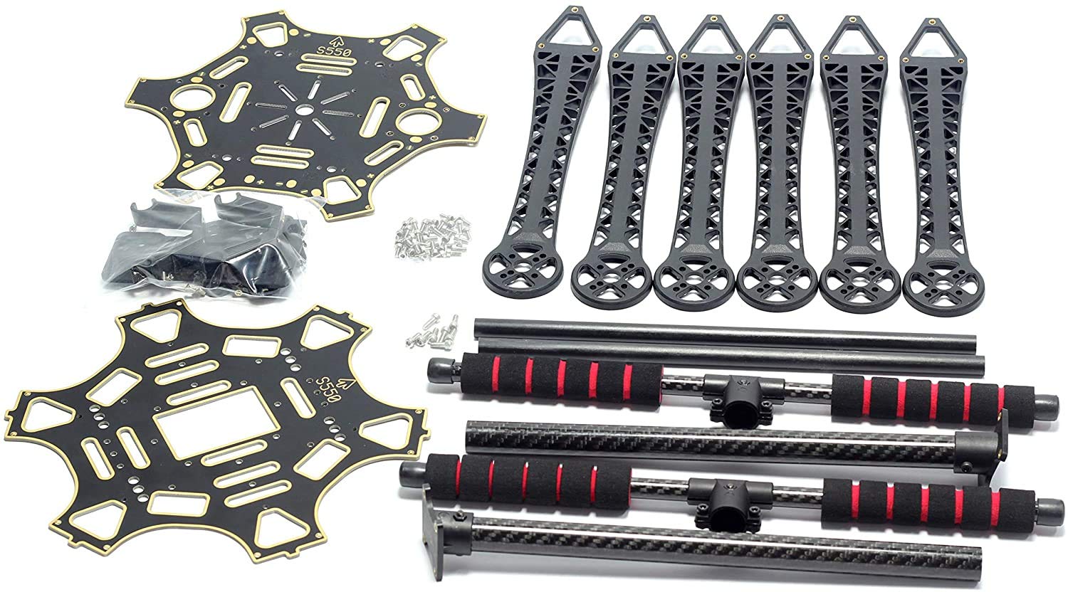 Details: S550 Hexacopter for DIY drone development kit PCB version with Carbon Fiber REC Technology 30A 2-4S ESC with 2.5 mm Banana connector (6 pcs) REC Technology (OEM) 2212-920KV Brushless motor (6 pcs) APM/Pixhawk Glass Fiber Shock Absorber XT60 Male Connector with 10CM 14AWG Silicone Wire Pixhawk 2.4.8 Flight Controller/cables/PPM Encoder/16G SD Card/Mini OSD/I2C Splitter/Power Module/safety button and buzzer Prop suggest: 10'' - 12'' (not included)