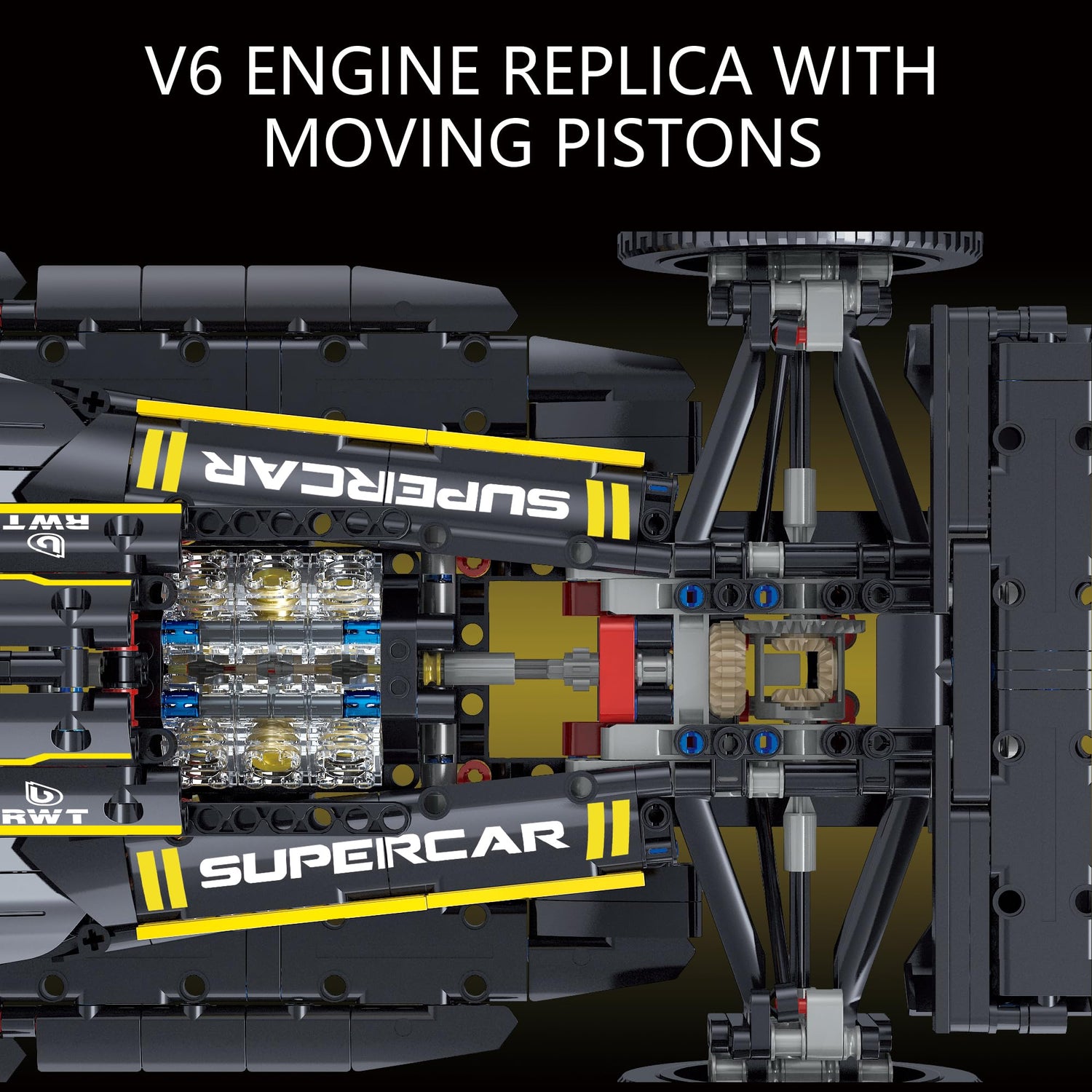 - 【Realistic Technic-Style Functions】 The race car features steering wheel linkage with front wheels, a 6-cylinder engine with moving pistons, suspension,and an opening rear wing inspired by DRS technology, replicating the aerodynamic systems used in modern F1 design.