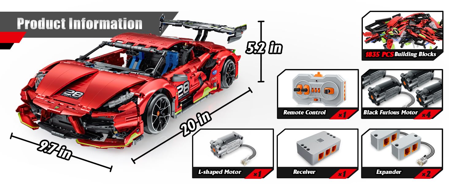 - Gift for Adults & Teens: This super car building set is a great gift for adults and teens alike, measuring 20 in x 9.7 in x 5.1 in. It combines the joys of building and racing, and can also be a perfect desk decor and display.