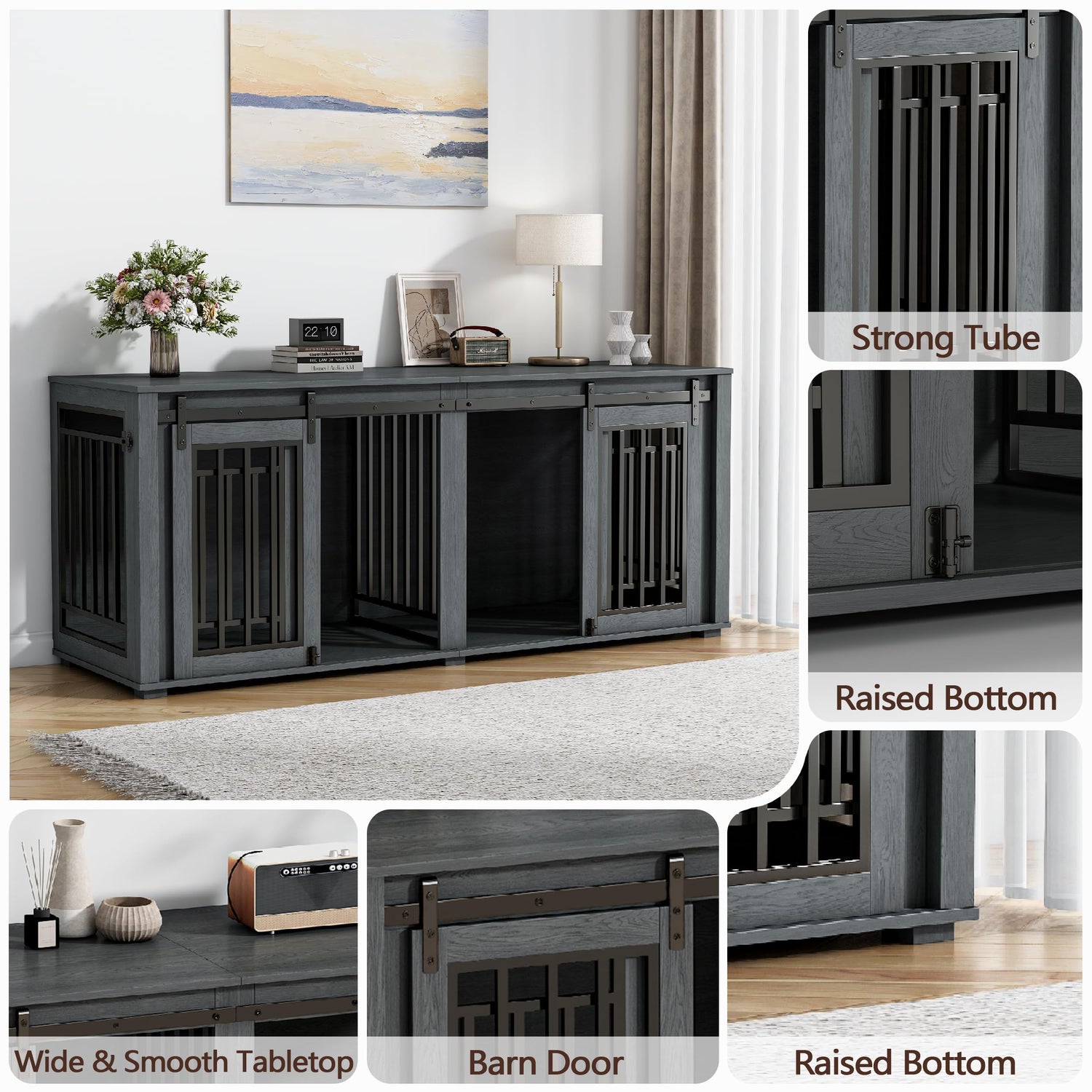 - MULTI-PURPOSE LARGE DOG CRATE: Our Large Dog Crate Furniture has a Spacious Tabletop can be Used as A TV Stand, Plant Stand, Side Table, or Display Stand. It will Complement any Home Decor, Providing a Combination of Furniture and Function. You can Easily Place Decorations or items on the Top, Making Your Home Tidy and Fully Meeting the Needs of You and Your Dog