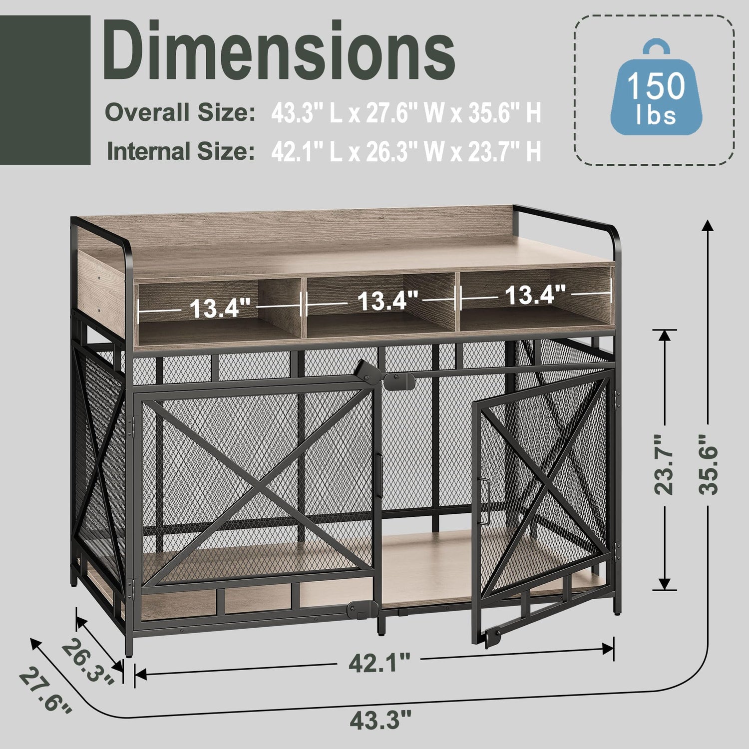 - 🐶【Size Selection】The overall size of the dog kennel furniture is 43.3" L x 27.6" W x 35.7" H. Please be sure to measure your dog's length and height before purchasing.